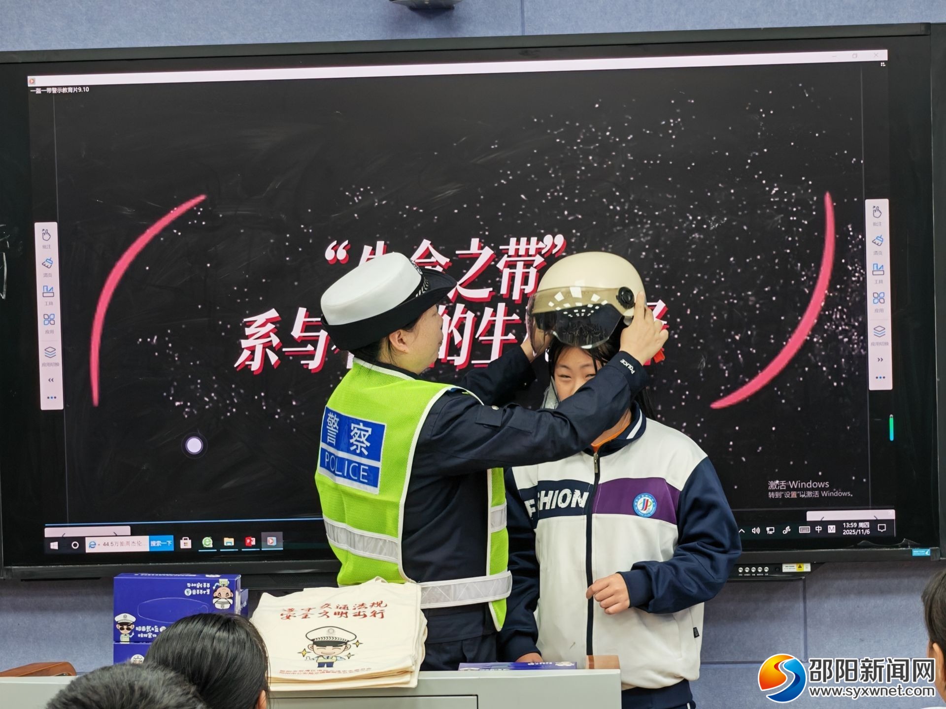 邵阳新闻网11月7日讯(通讯员 孙静 张春花)11月6日,邵阳市公安局交通警察支队双清大队走进市第十一中学,开展“文明交通 礼行天下”主题宣传活动,为全校师生带来一堂生动实用的交通安全知识课,课程通过直播在各教室同步播放。