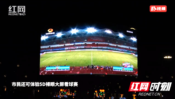 市民体验5D裸眼大屏看球赛。