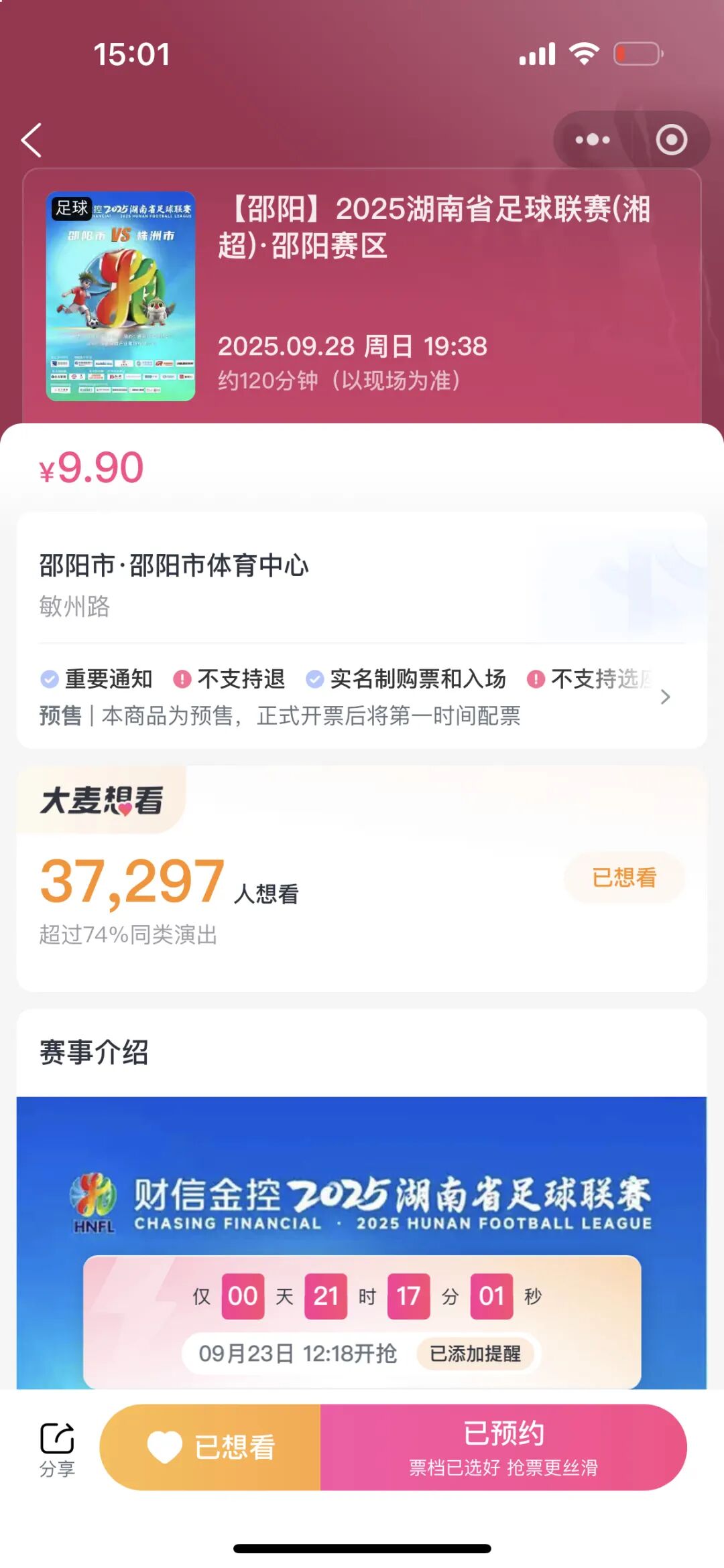 1.官方通道锁定:打开大麦网APP/小程序,搜索“湘超”选择邵阳主场,提前预约;