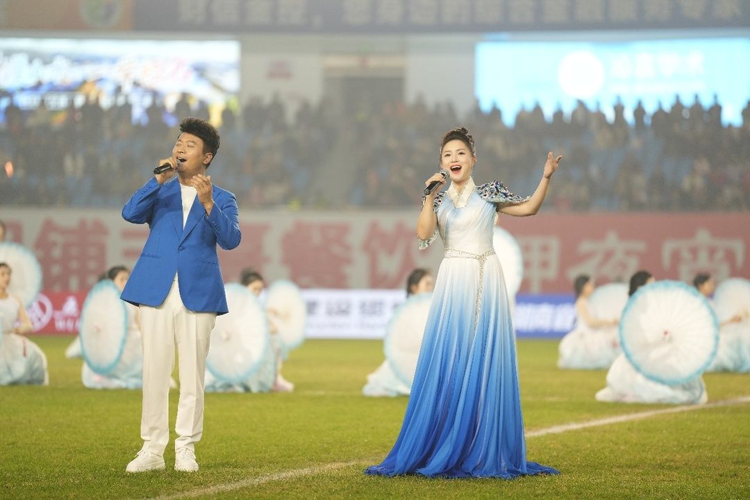(《资江谣》唱响湘超赛场。申兴刚摄)