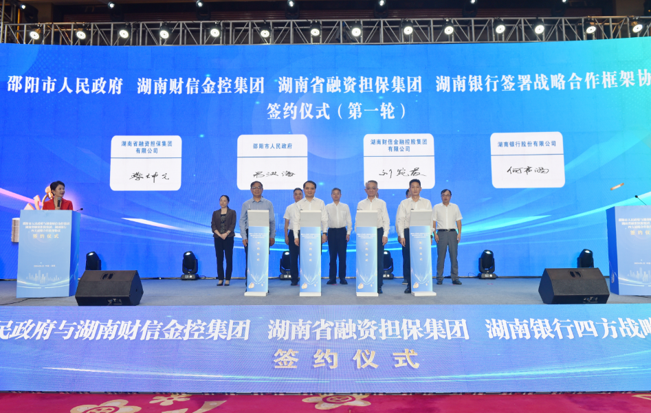 省委金融办二级巡视员石涛,湖南银行董事长黄卫忠,省融资担保集团党委副书记、副董事长、总经理胡茹琰,湖南财信金融控股集团党委副书记刘飞等出席,副市长易洪海主持签约仪式。