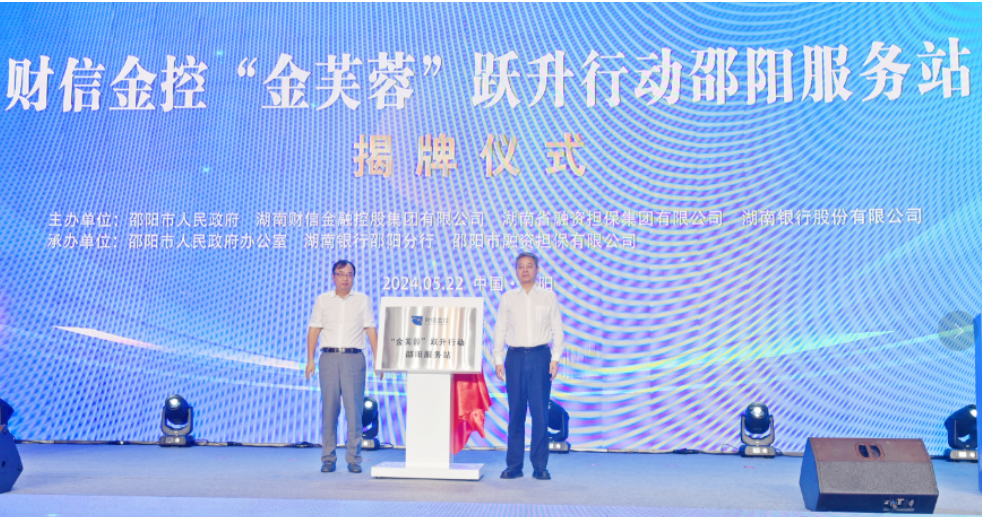 活动现场,财信金控“金芙蓉”跃升行动邵阳服务站正式揭牌,湖南省融资再担保有限公司与我市5家融资担保公司签约,湖南银行邵阳分行、湖南省联合产权交易所与我市有关企业、项目签约。