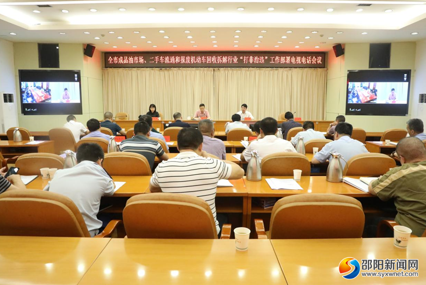 邵阳新闻网6月20日讯(通讯员 陈果 石菁)为加强全市成品油市场、二手车流通和报废机动车回收拆解行业监管工作,6月19日,邵阳市召开成品油市场、二手车流通和报废机动车回收拆解行业“打非治违”工作部署电视电话会议。副市长胡小刚出席。