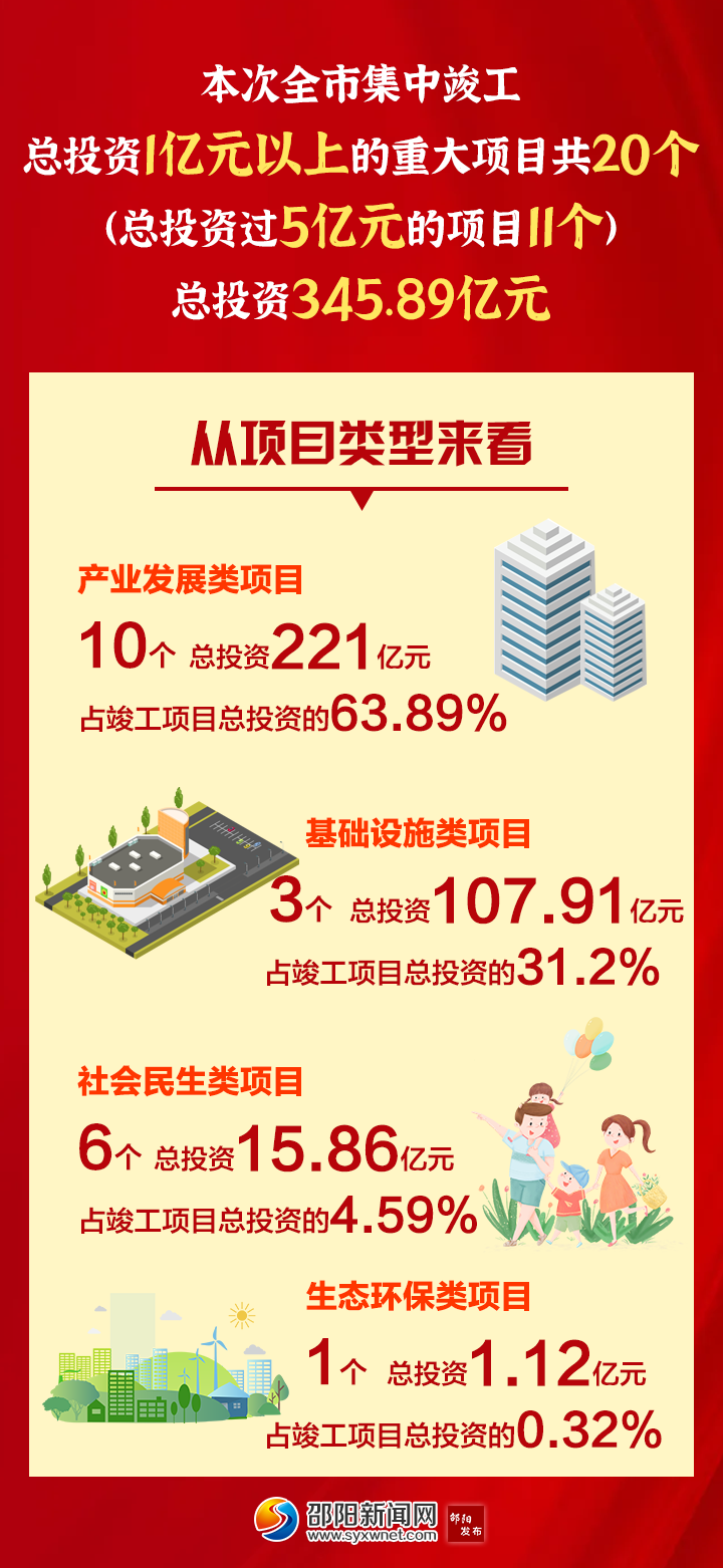 本次重大项目集中开竣工活动,是邵阳市全面贯彻党的二十大和二十届二中、三中全会和中央经济工作会议精神,全面落实习近平总书记关于湖南工作的重要讲话和指示批示精神的具体举措,也是努力完成今年全省、全市经济社会发展目标任务和推动明年实现良好开局的具体行动。这些项目建成投产后将进一步优化我市产业布局、提升产业层次,为邵阳高质量发展注入新活力、积蓄新动能。