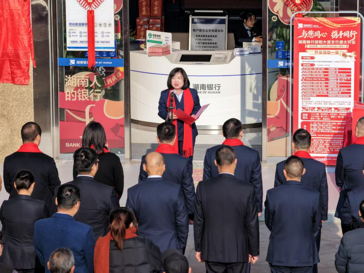 邵阳新闻网12月27日讯(记者 孙成学 刘富洪)12月26日,湖南银行邵阳大道支行正式揭牌营业,标志着湖南银行在服务地方经济、深耕区域发展的布局上迈出坚实一步。