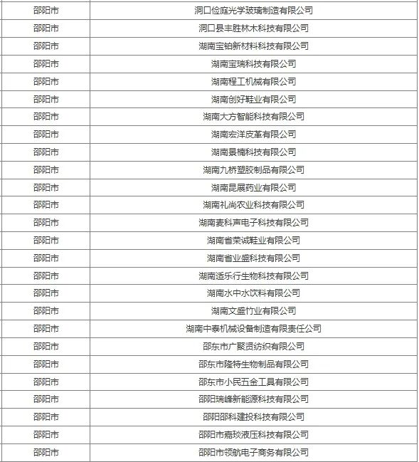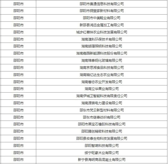 湖南省第十三批创新型中小企业拟认定名单(邵阳)