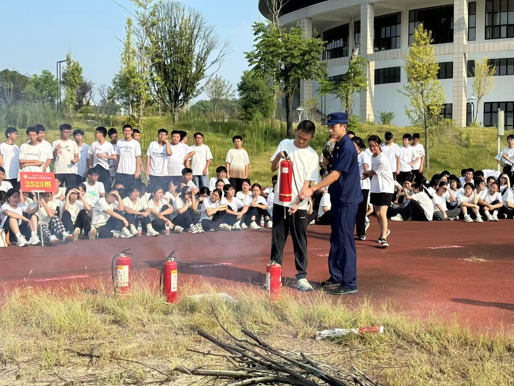 活动现场,大队宣讲员结合学校火灾案例,针对安全疏散、扑救初期火灾、正确拨打火警电话和使用消防器材设施等方面进行普及。同时,还根据校园火灾的独特性,结合宿舍违规用电、实验室操作等校园常见隐患,教孩子们识别风险;演示“说清地址、火情、被困人数”的报警要点,反复强调“弯腰低姿、湿毛巾捂口鼻”的逃生原则。现场还展示了消防装备和出警流程,手把手教孩子们掌握灭火器“一提、二拔、三握、四压”的用法。同学们积极参与,在寓教于乐中对消防安全有了更深层的认识。