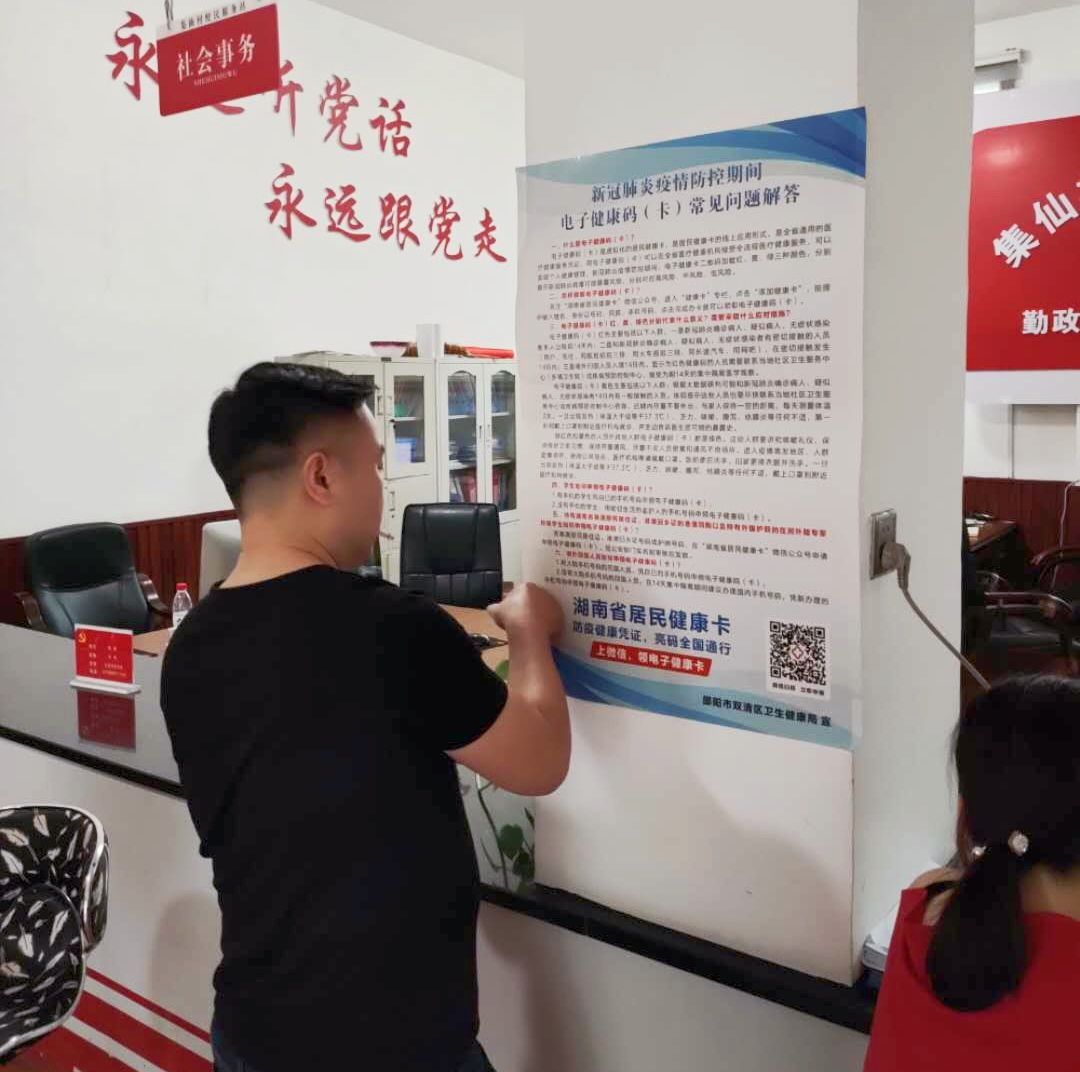 工作人员到社区乡镇便民窗口张贴健康码宣传资料