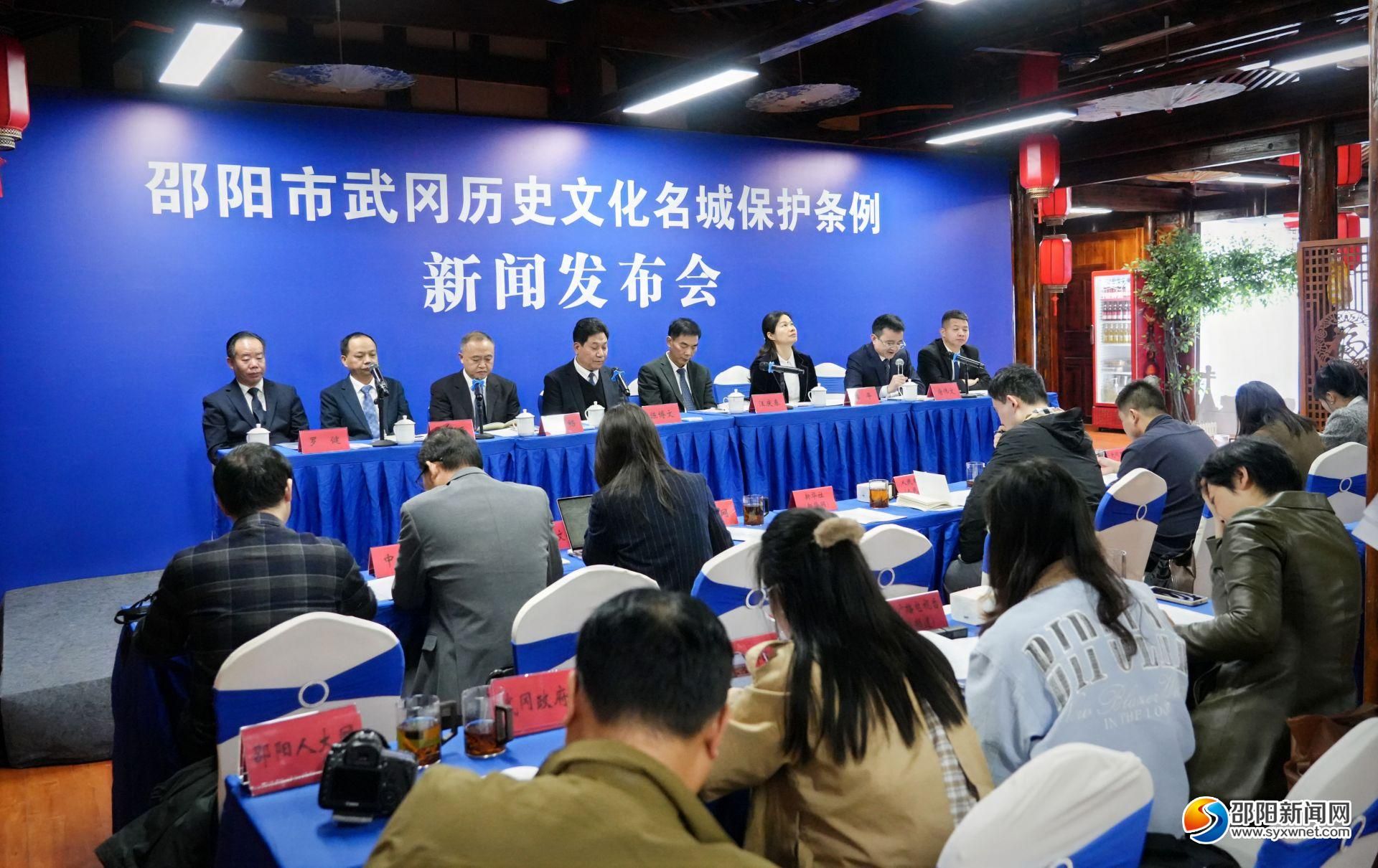 邵阳新闻网11月5日讯(记者 刘其洁 通讯员 周旭芳 顾艳)11月5日,邵阳市人大常委会在武冈举行新闻发布会,发布并解读《邵阳市武冈历史文化名城保护条例》(以下简称《条例》)相关内容。《条例》的颁布施行将为推动武冈历史文化名城的建设和保护提供坚实法律保障。邵阳市人大常委会副主任陈博文出席发布会。
