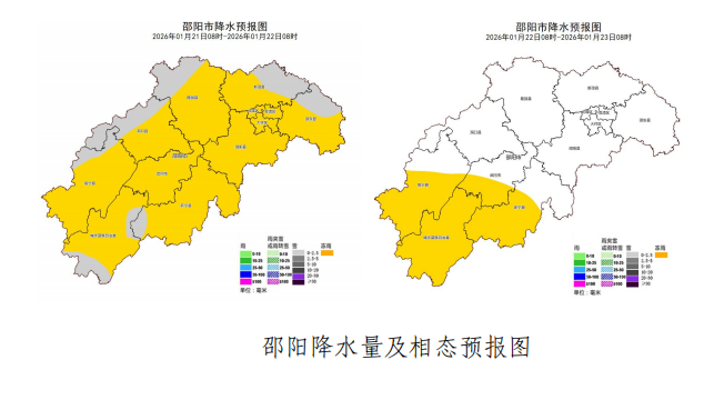 邵阳市气象台消息,1月20日8时至21日8时,邵阳大部地区出现冻雨或雨夹雪或小雪,邵阳区域内的10个国家基本气象观测站积冰厚度0~2毫米,高寒山区积雪深度1~3厘米,全市平均降水0.6毫米,最大降水6.6毫米(新邵县酿溪镇新邵站)。1月20日8时至21日8时,最低气温-3.5℃(邵东)~-1.5℃(绥宁);高寒山区最低气温武冈云山-9.4℃、隆回小沙江-8.5℃、绥宁宝顶山-8.4℃、新宁黄金牧场-8.3℃、新邵龙溪铺镇-7.9℃。极大风速11.5m/s(城步茅坪镇)。