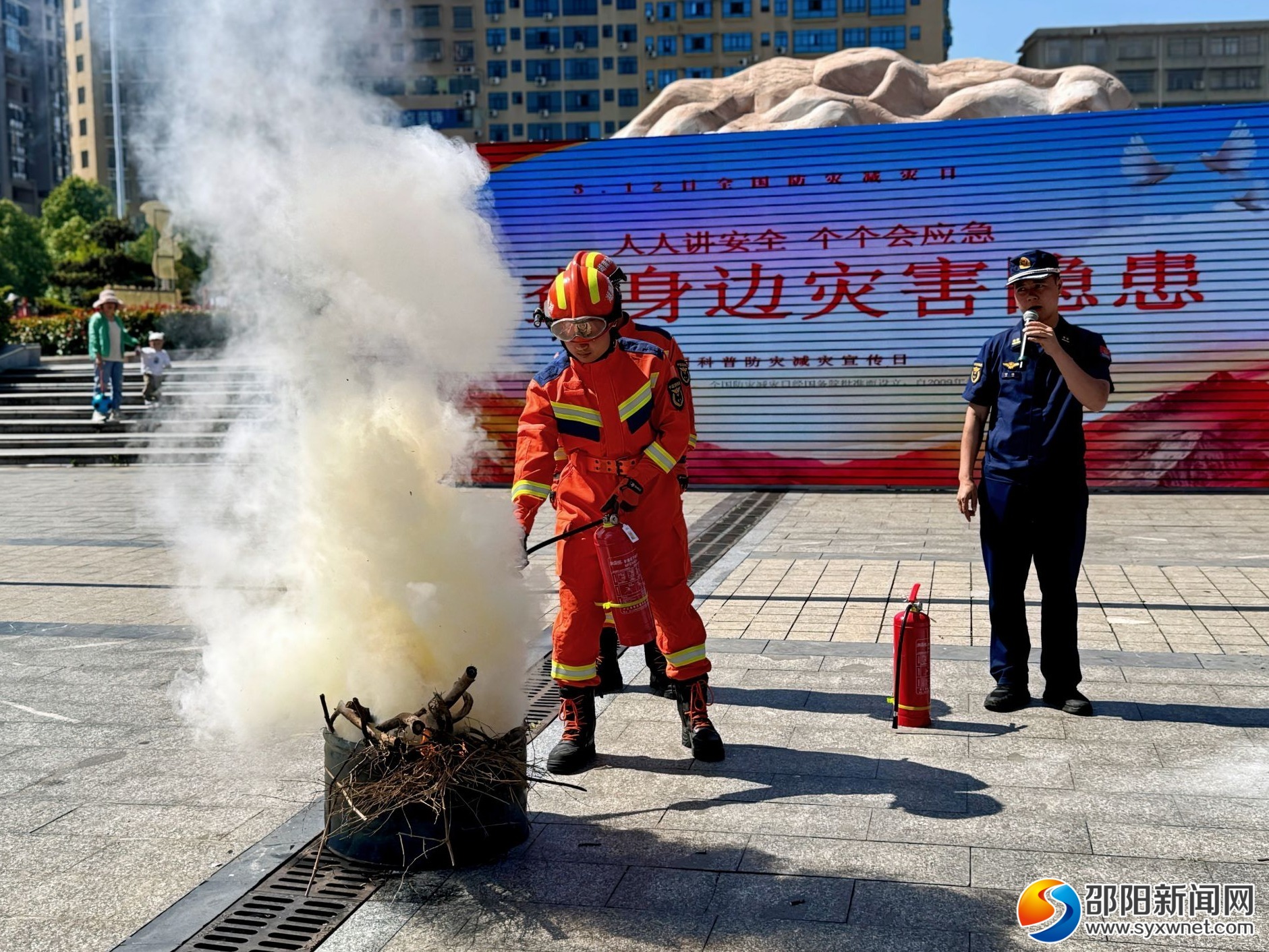 邵阳新闻网5月14日讯(通讯员 粟凌桑 肖琪)今年5月12日是第 17个全国防灾减灾日,为进一步强化消防科普、警示教育和提示宣传,大力推动防灾减灾工作常态化,切实加强群众对各类火灾事故的抵御能力,邵阳县消防救援大队在振羽广场开展以“人人讲安全 个个会应急”为主题的防灾减灾日宣传活动。