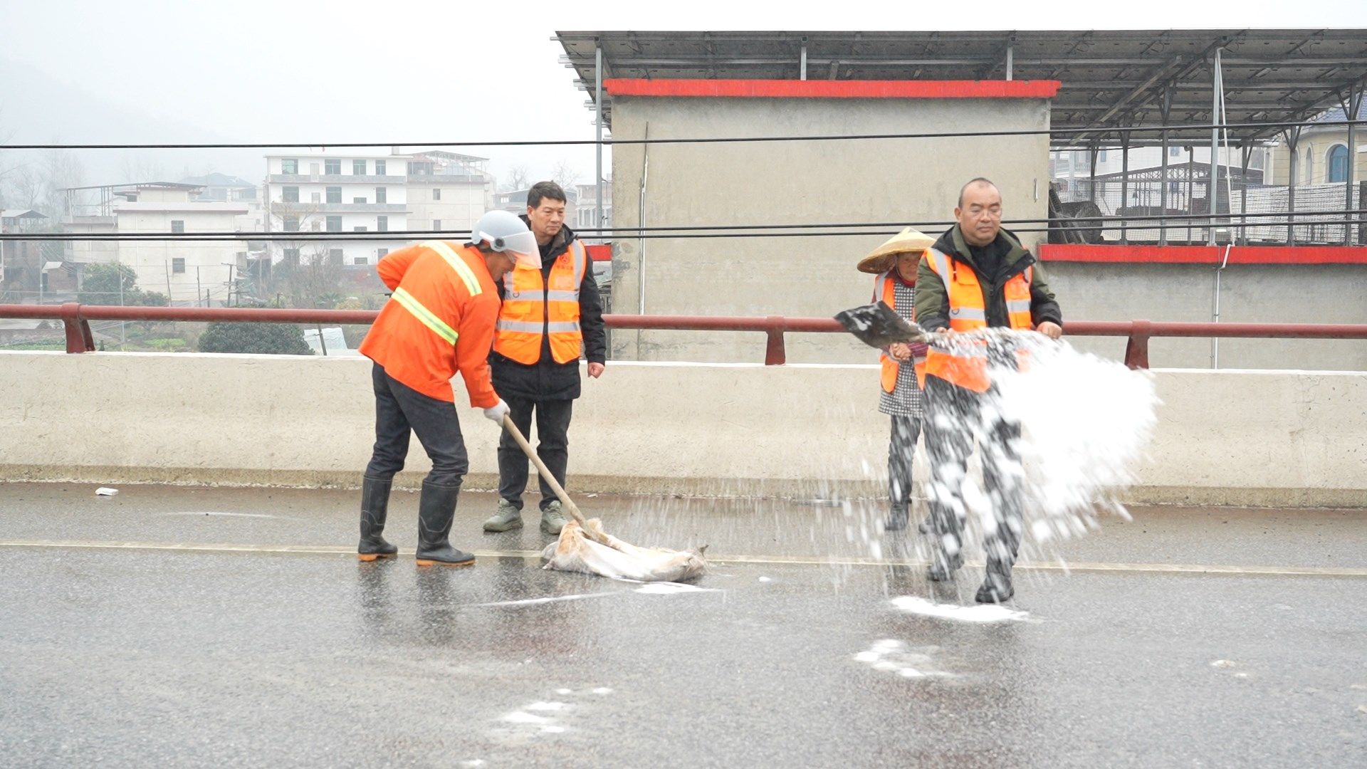 自1月19日凌晨寒潮预警发布后,邵阳县公路建设养护中心连夜行动,组建6支专项应急工作组,抽调25名作业人员,出动作业车辆4台、保障车辆2台,按片区对全县国省干线、县乡公路的桥梁、急弯陡坡等易冻路段开展拉网式隐患排查。该中心提前备足30吨融雪剂、7000只麻袋等应急物资,在危险路段规范设置标志牌、锥形桶等警示设施,4台除冰除雪机械设备全天候待命。同时在关键点位增设醒目警示标识,将融雪剂定点足量储备放置,确保突发路面结冰时,应急物资能随取随用、处置高效,全方位织密道路安全防护网。
