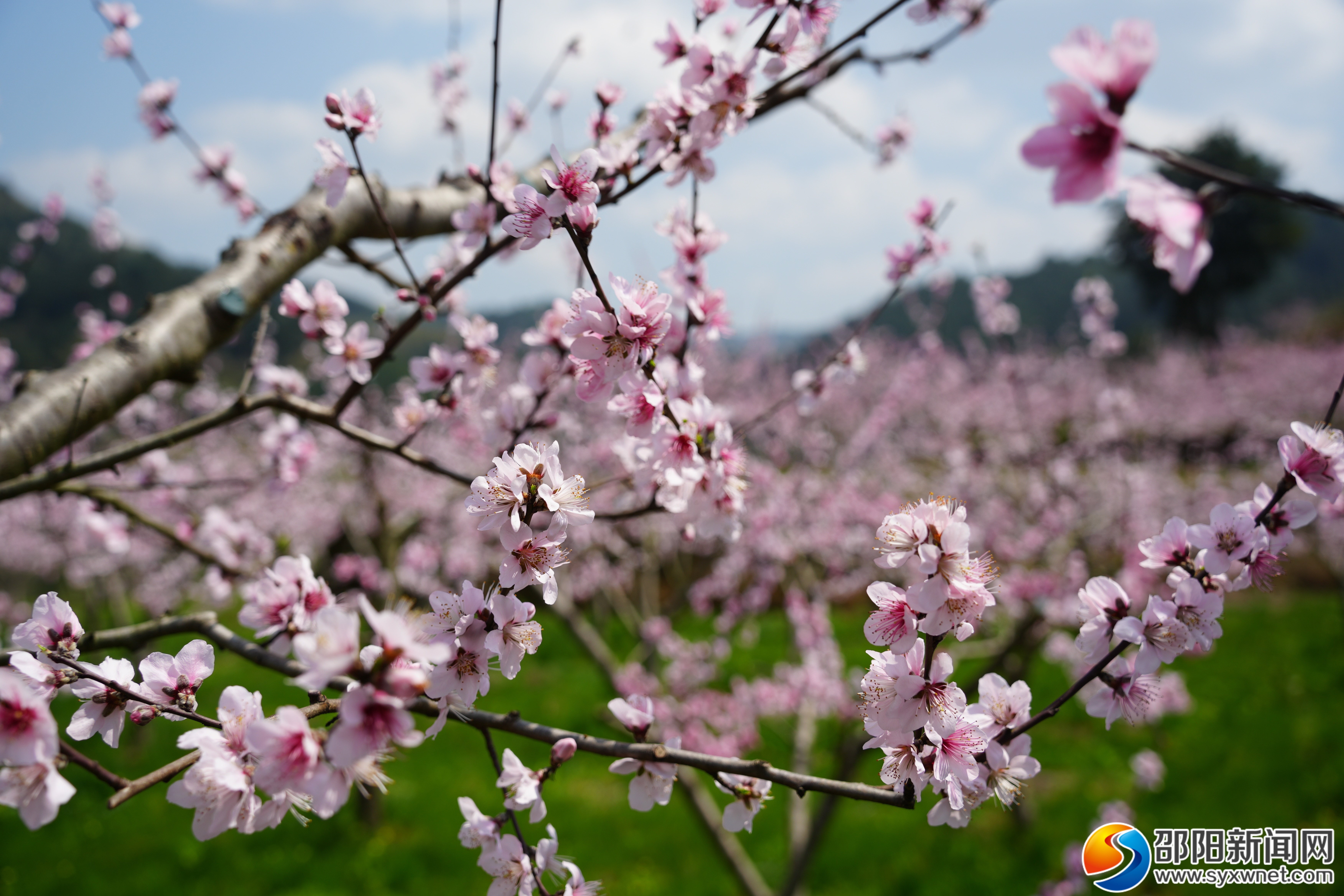 邵阳新闻网4月1日讯(通讯员 唐芳艳 宋三龙)3月31日,邵阳市绥宁县河口苗族乡新团村堆子丘的80亩桃花竞相绽放。在明媚的阳光下,一团团、一簇簇粉红的桃花泛起淡淡的红晕,就像落下的胭脂云,洋溢着青春的色彩,形成一幅春意盎然的画卷,引得周边游客纷纷前来赏花观景品花香。