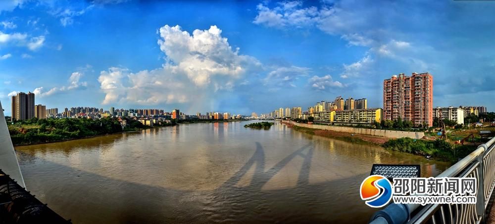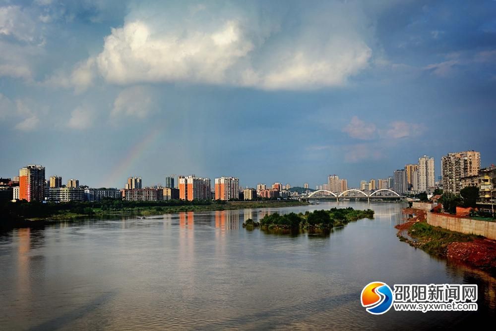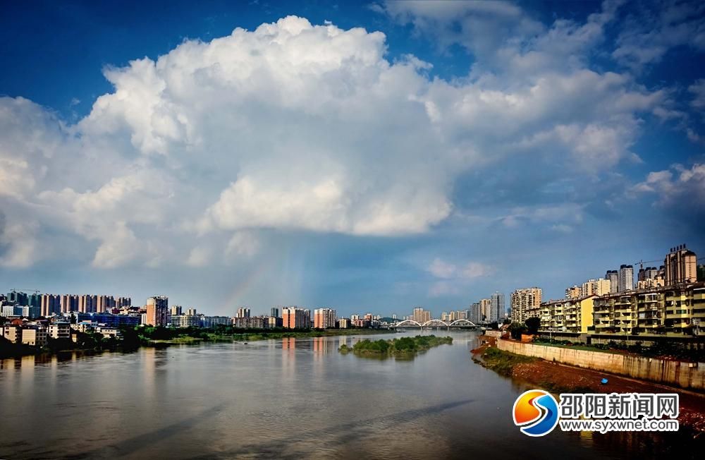 邵阳新闻网7月15日讯(通讯员 雷振梁)7月13日下午,邵阳一阵雷雨过后,在资江的东北方向出现了一道美丽彩虹。蓝天、白云,还有彩虹,把资江及两岸映衬得宛如一幅油画。