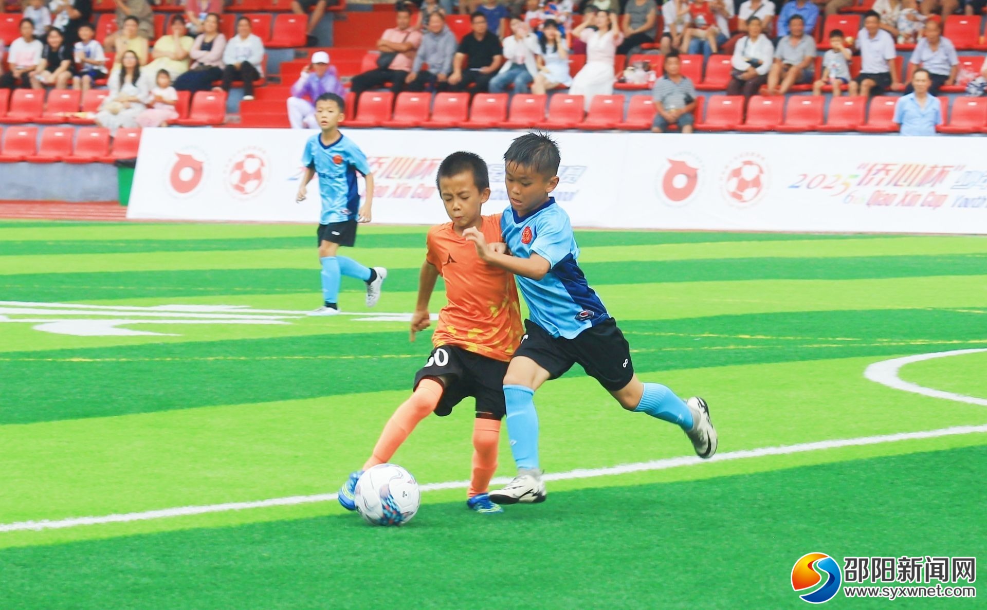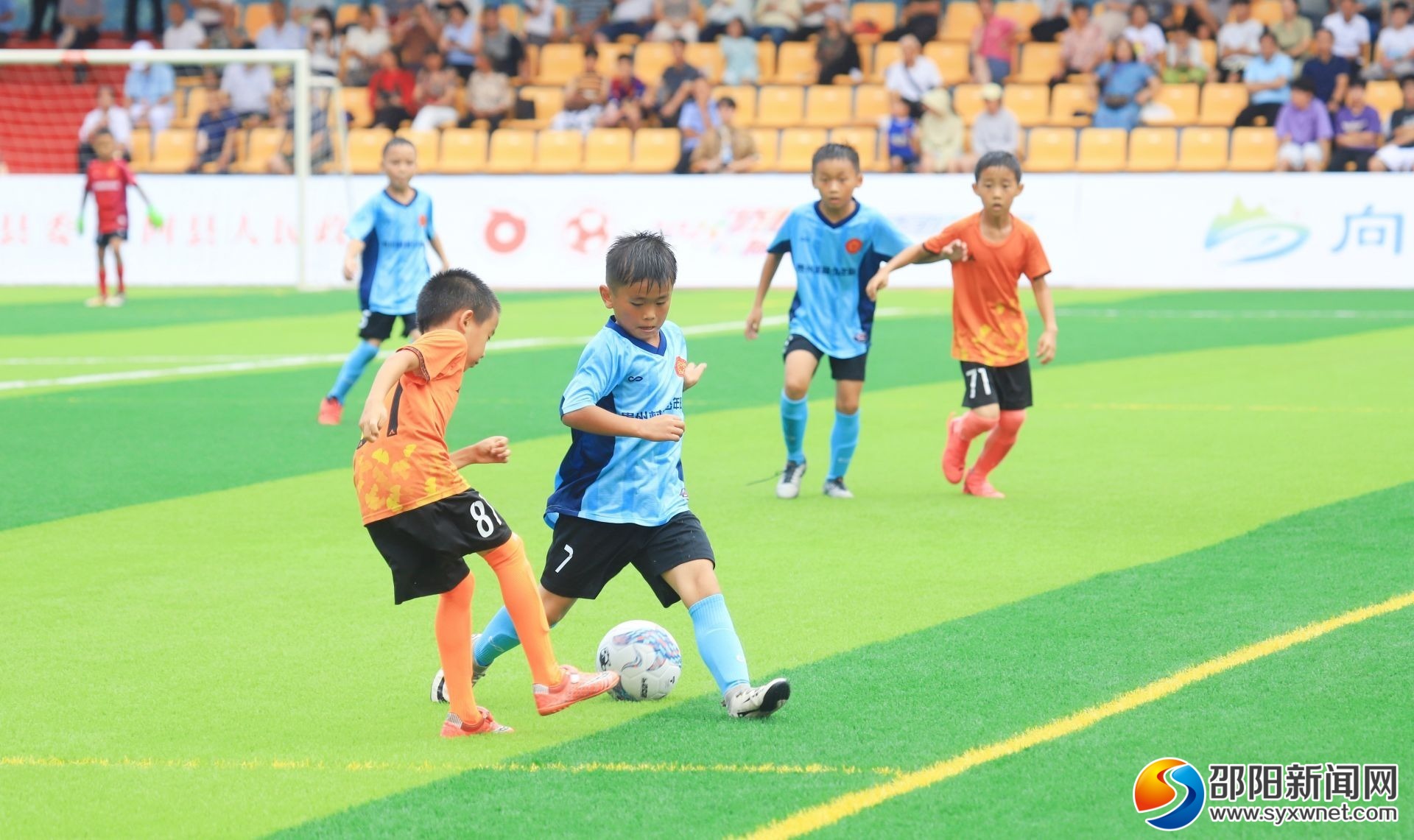 邵阳新闻网7月24日讯(记者 何杰锋 张育溪)7月24日下午,第六届“侨心杯”少年足球邀请赛,贵州榕江村超少年队对战中国人民大学附属中学实验小学。他们在绿茵场上挥洒汗水,骄阳与热浪都没能阻止他们的步伐,速度与力量在他们身上迸发,激情与勇气在赛场上久久回荡。