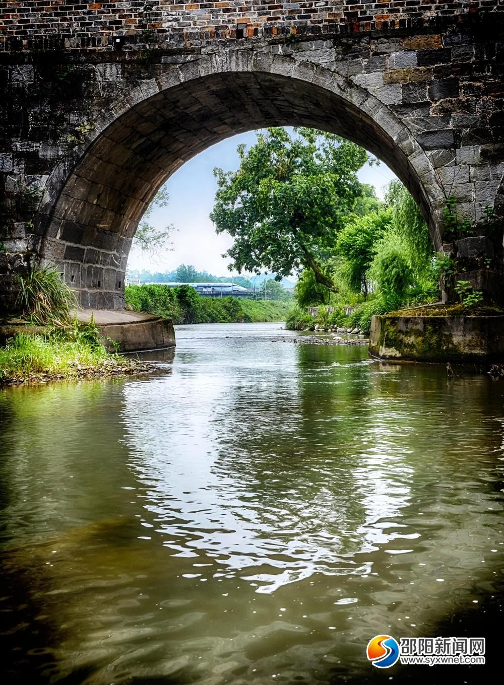 新邵时荣古桥景观:时历千秋留胜景,荣连两岸焕新颜。