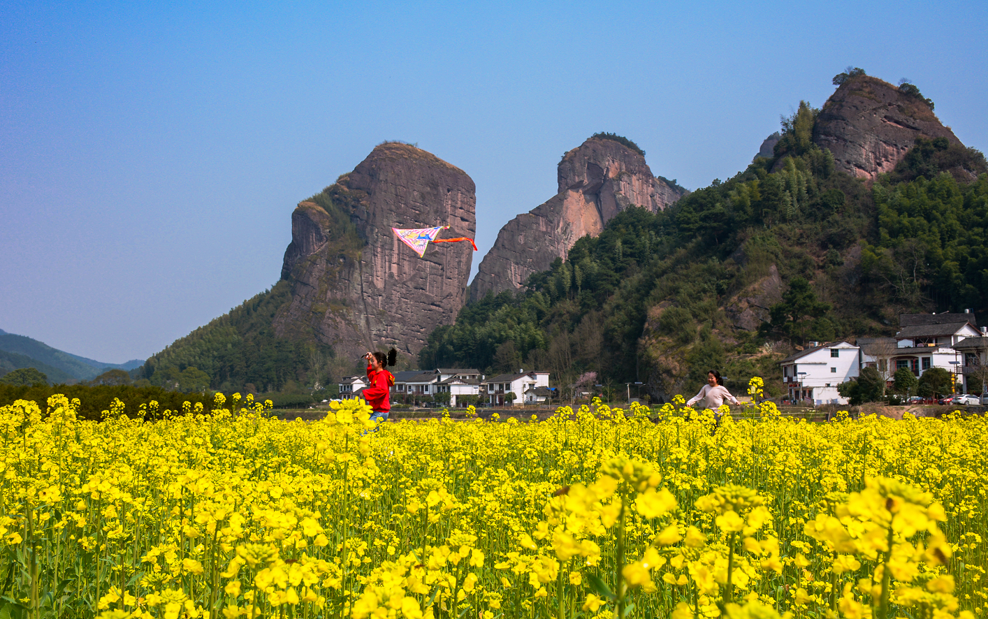 2月22日,阳光明媚,春风送暖,正值油菜花开之际,新宁县崀山镇石田村辣椒峰脚下的油菜花正争相开放,美不胜收。