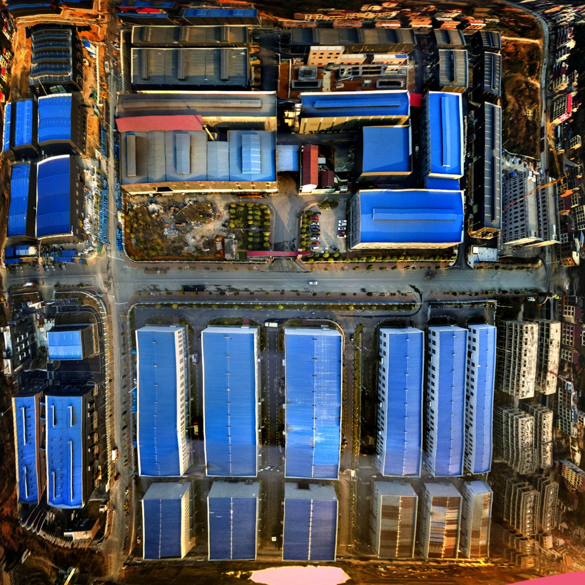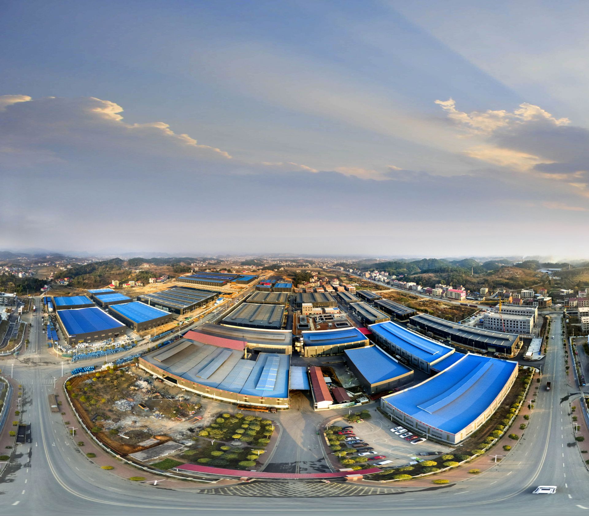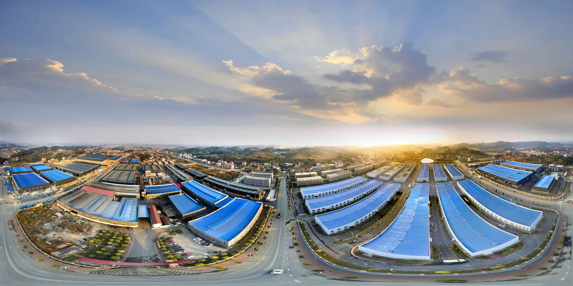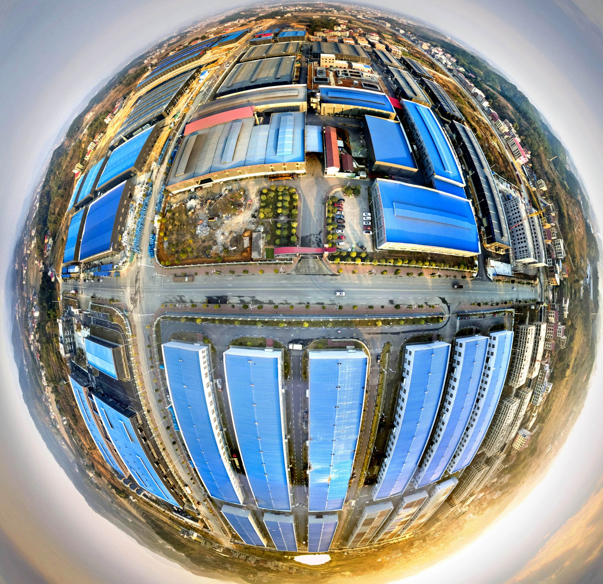 邵阳雀塘循环经济产业园鸟瞰全景圆形图。