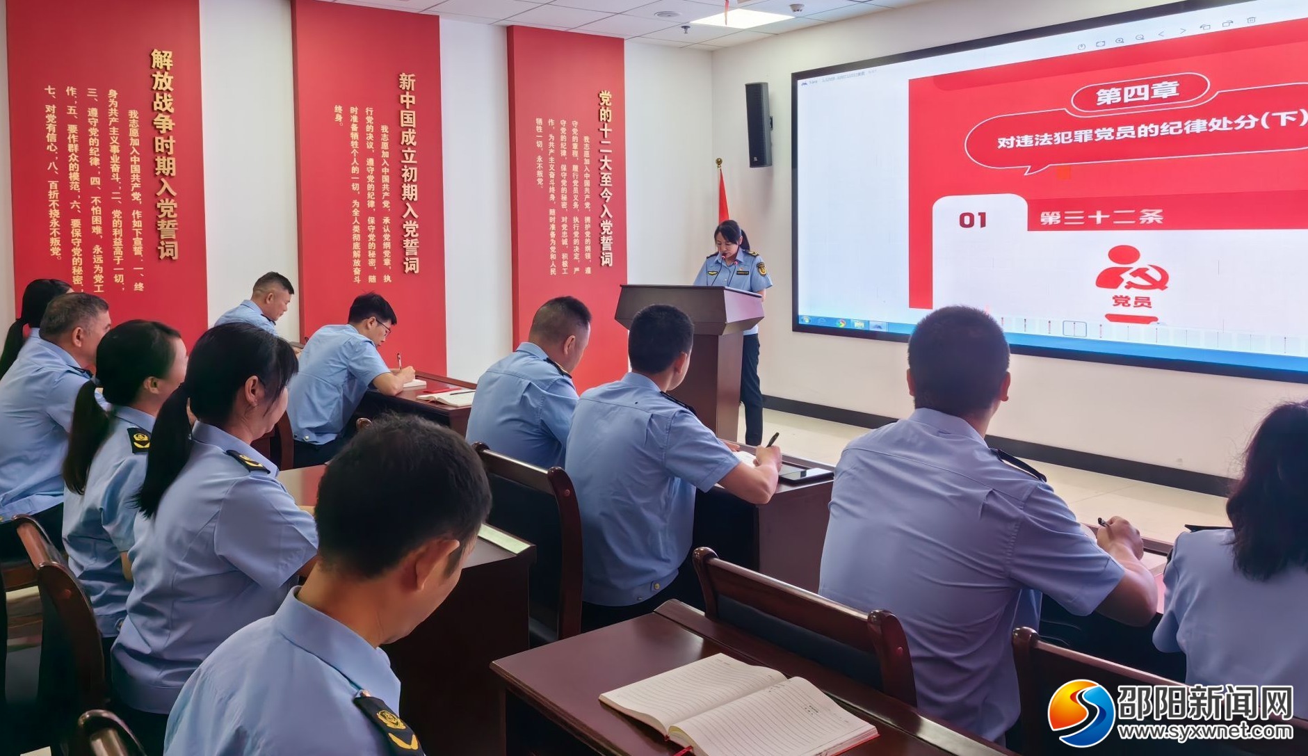 活动中,全体党员干部重温入党誓词,共同学习了《中国共产党纪律处分条例》等相关重点内容。会议要求,全体党员干部要认真学习贯彻《条例》,进一步坚定理想信念、改进工作作风,进一步强化纪律意识、加强自我约束,深刻领悟《条例》的丰富内涵,扎实推进单位事业高质量发展。