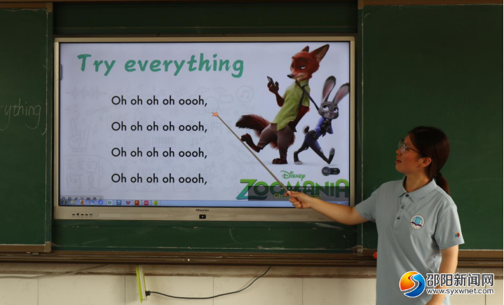 教学中,志愿者发现当地小朋友英语基础薄弱,学唱英文歌有困难,便用趣味谐音梗转化复杂发音助其记忆,同时还播放《疯狂动物城》片段,借朱迪重拾信心情节吸引注意力。接着结合剧情讲解主题曲《Try Everything》歌词、阐释词义,借趣味绕口令巩固发音,互动环节孩子们分组论单词发音,平时内向的刘佳燕同学也大胆用英语为朱迪加油,课堂氛围热烈 。