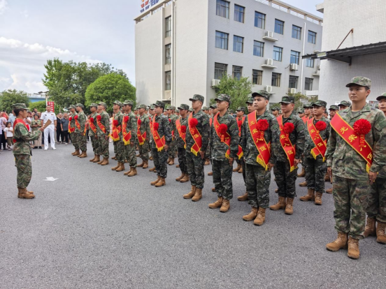 仪式现场,军歌嘹亮,新兵们身着崭新戎装,肩披“光荣入伍”绶带,胸戴鲜艳红花,人人精神饱满、意气风发,展现出新时代青年从军报国的昂扬姿态。新兵代表毛城彬与家长代表肖滨先后发言,表达了积极投身国防的坚定决心与亲人的殷殷嘱托。