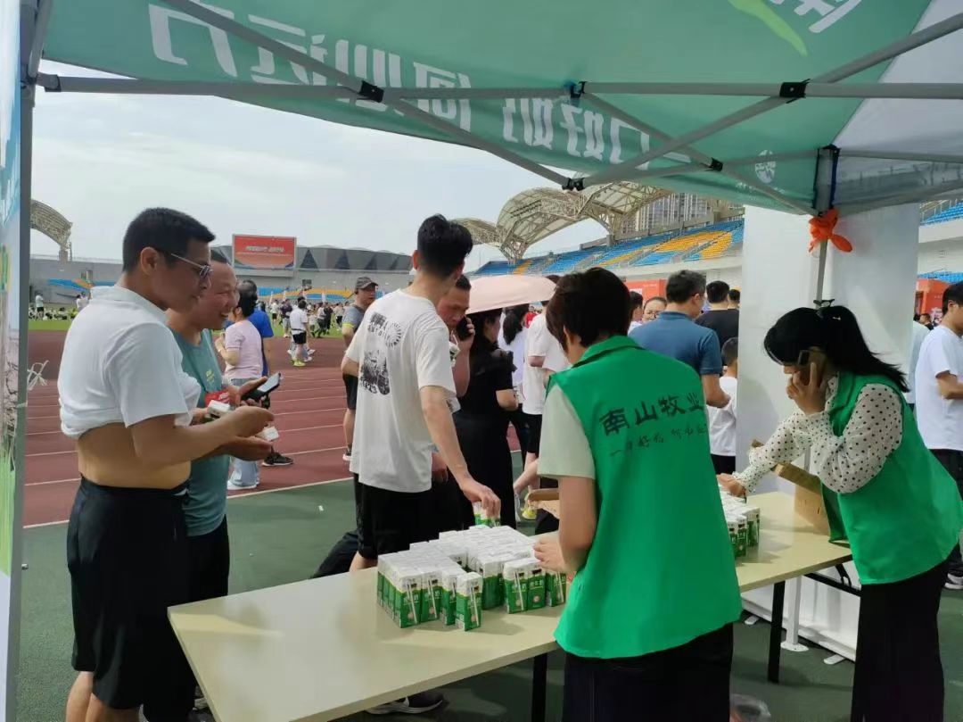 南山牧业的介入,为这场体育盛宴增添了独特的韵味。在赛场周边,南山牧业设置了产品体验区,观众可以免费品尝新鲜乳制品,感受来自南山草原的纯净味道。一杯杯醇香的牛奶成为连接品牌与体育爱好者的纽带。来自邵阳学院的李同学说:“每次比赛后喝上一杯南山牛奶,不仅补充了体力,更感受到了家乡企业的温暖和支持。”这种沉浸式的品牌体验,让当地居民在享受体育激情的同时,也能深入了解本土乳企的产品品质。