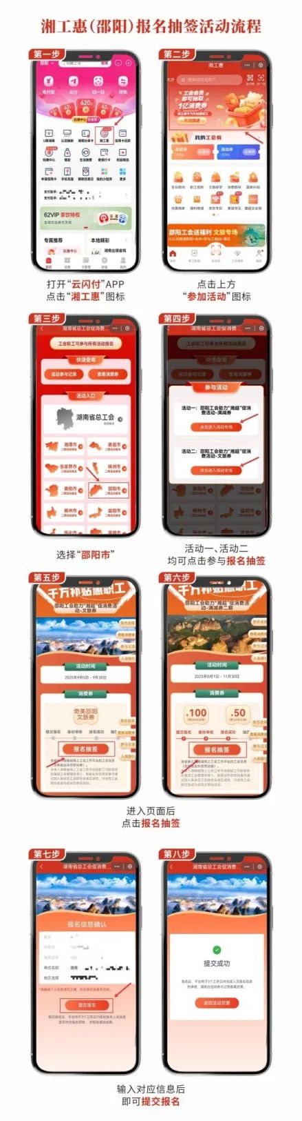 报名方式:通过“云闪付”APP进入“湘工惠”小程序,填写信息即可报名;
