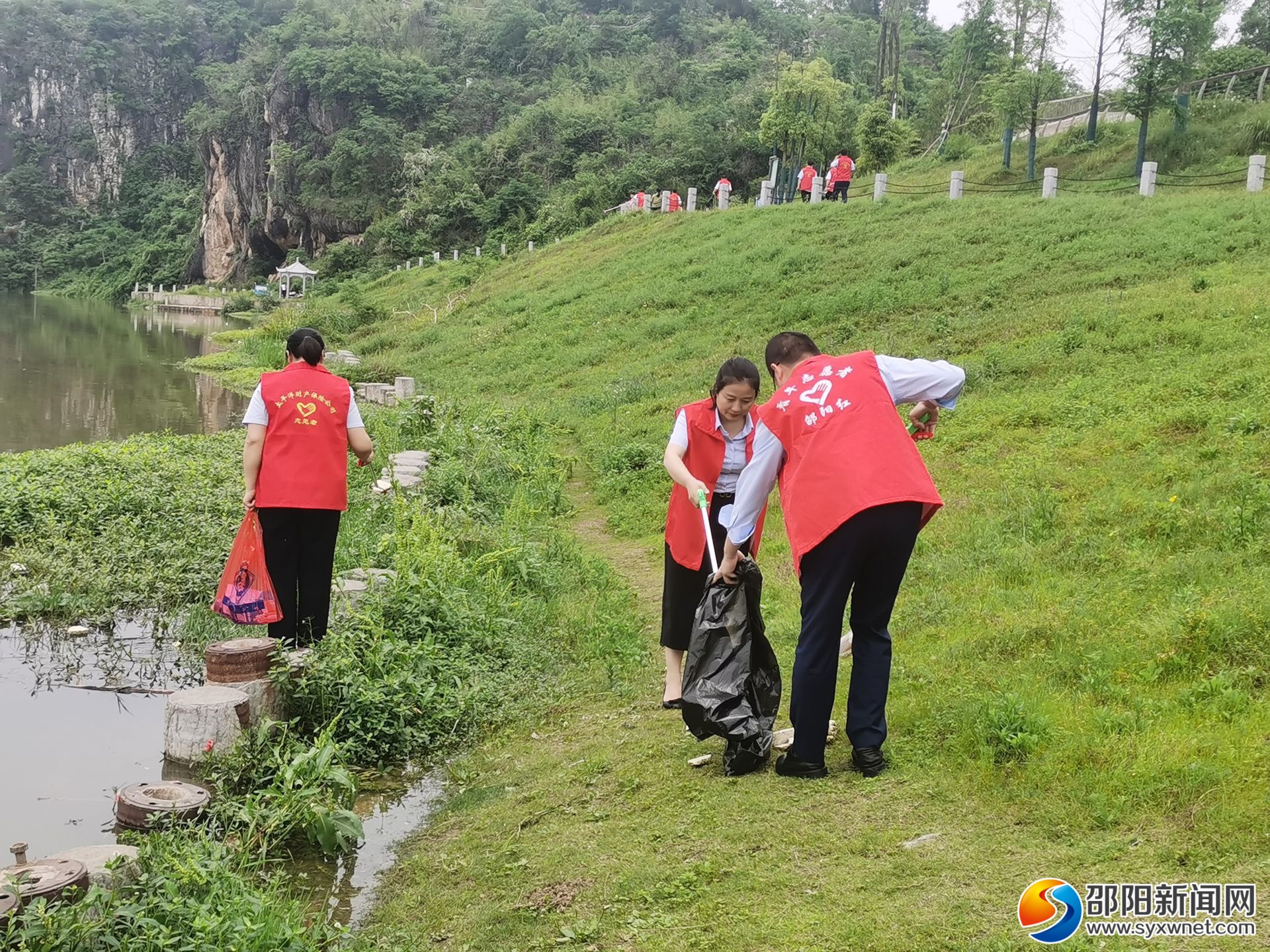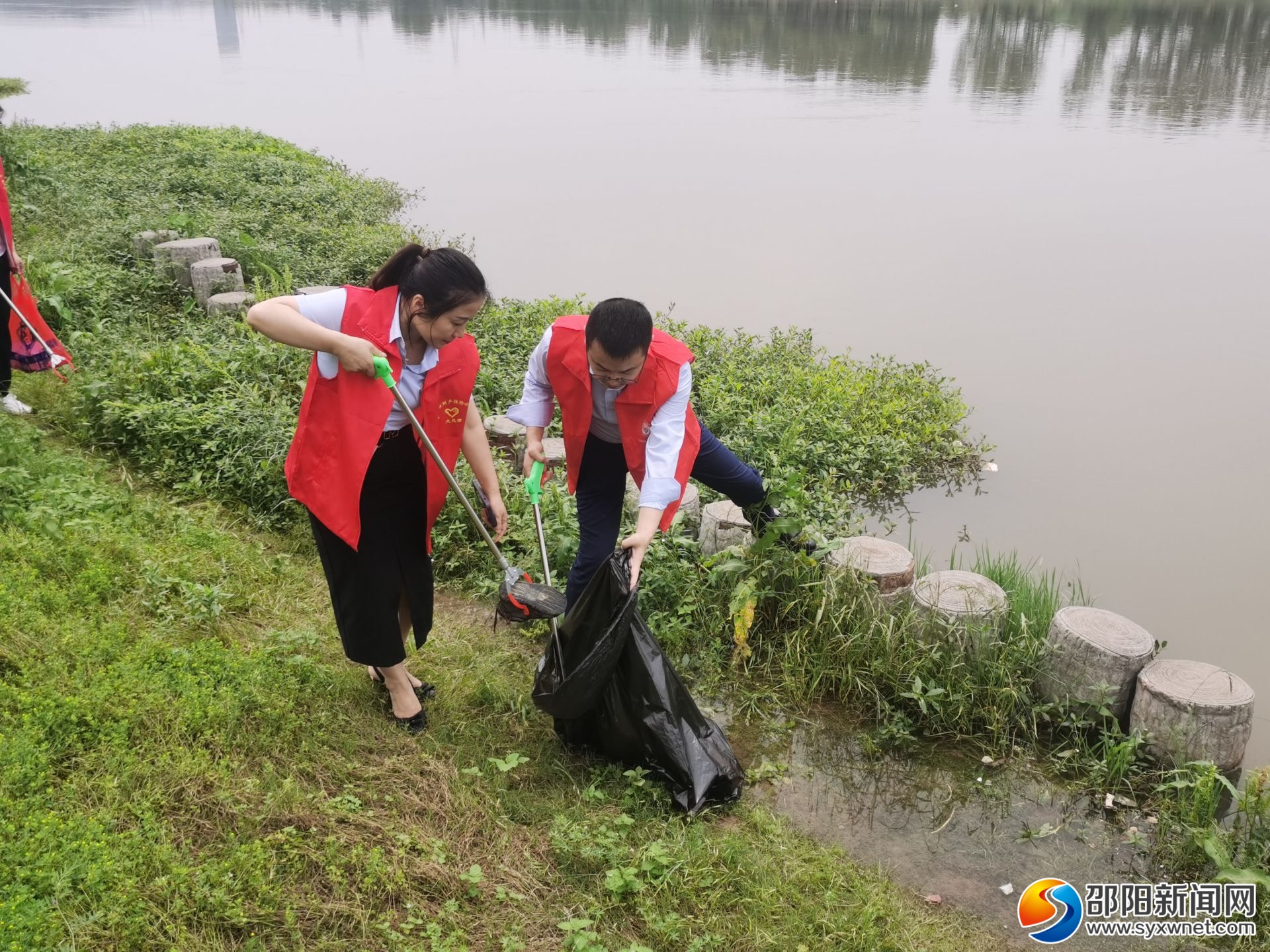 活动现场,青年志愿者们身穿红色马甲,手持火钳、垃圾袋等卫生工具,沿着资江岸线边走边看,仔细寻找并收集岸边的垃圾、打捞清理河道内漂浮物,用实际行动保护母亲河,共同守护一汪碧水。经过一个多小时的忙碌,岸堤、步道焕然一新。