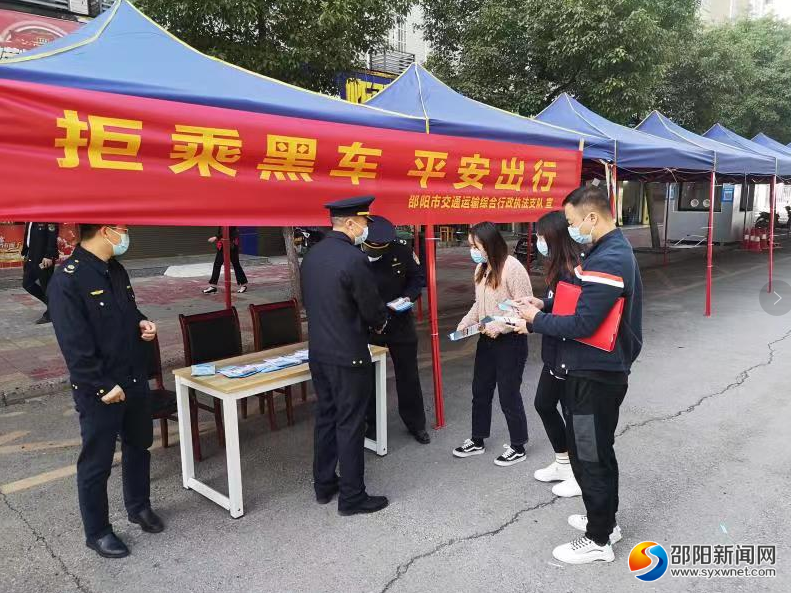 当日上午,市交通运输综合行政执法支队执法人员来到邵阳火车站和市区各汽车站周边,设立宣传展板和展台,为过往的市民群众发放“拒乘‘黑车’ 安全出行”宣传单,并同步开展《邵阳市查处车辆非法客运若干规定》立法调研问卷调查工作。深入剖析“黑车”危害,大力倡导市民拒乘“黑车”,平安出行。现场市民群众积极性很高,积极参与问卷调查活动。当日共发放宣传资料300余份,填写调查问卷100余份,取得了良好的宣传效果。