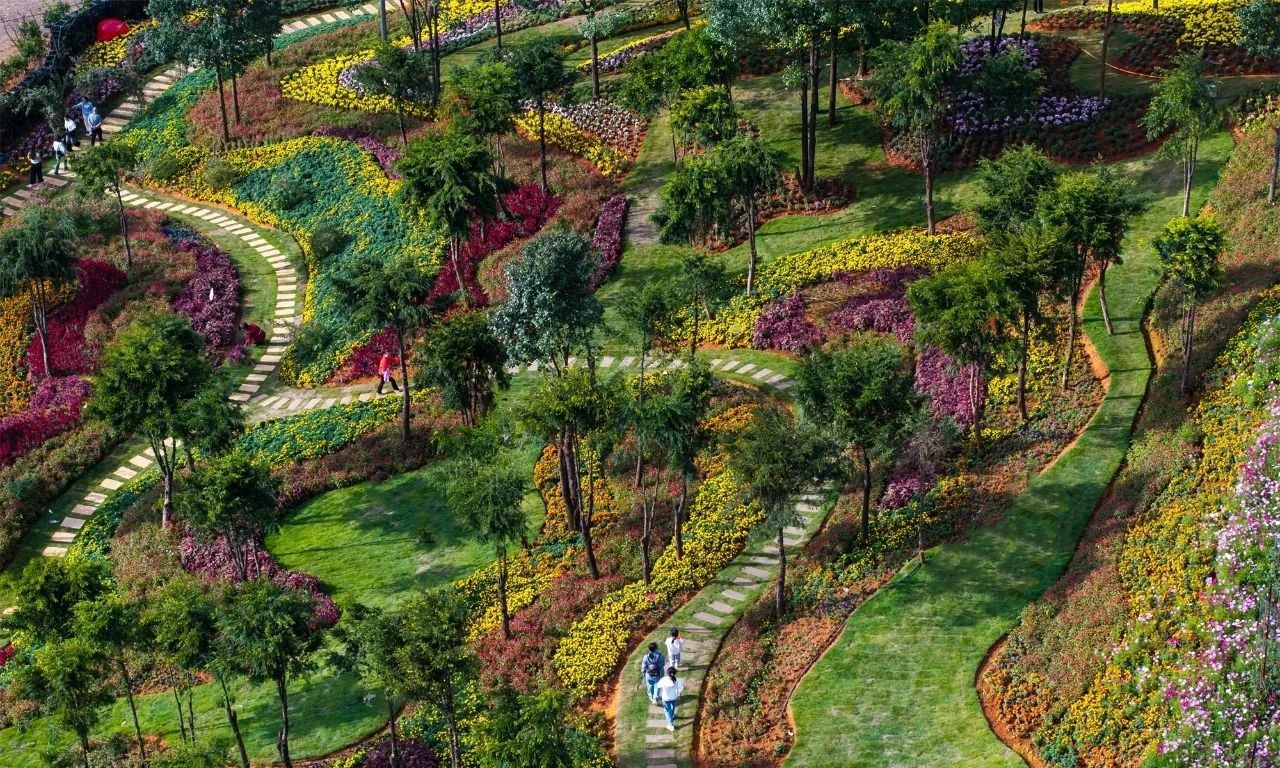 景区内,游客自觉爱护花草,按照游览线路观光。