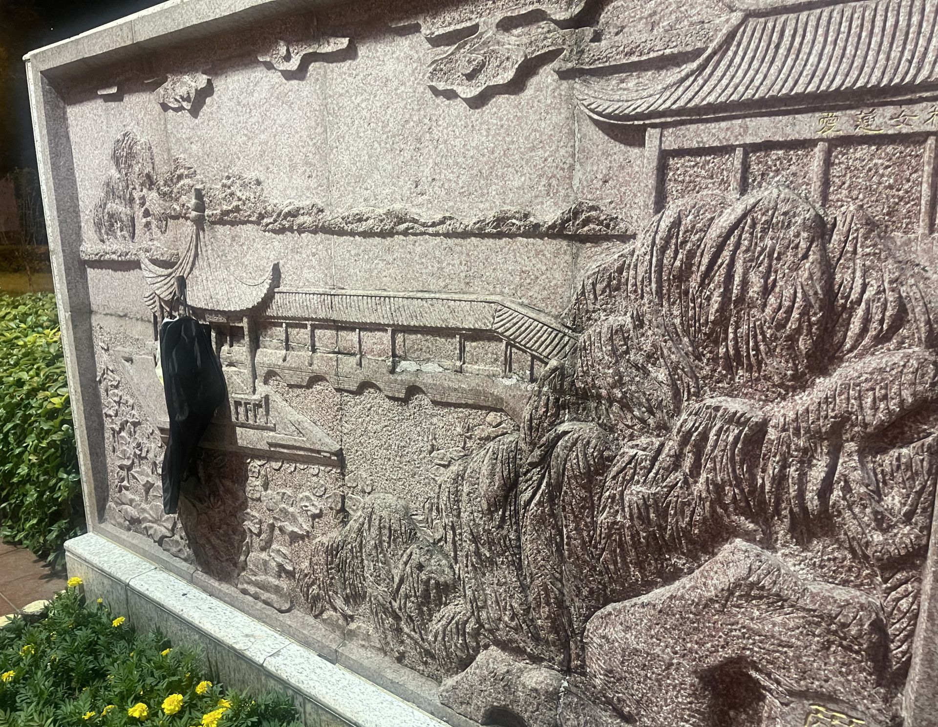 记者走访发现,尽管公园整体环境良好,但不文明现象依然存在。地面上,塑料袋、食物残渣等垃圾随意丢弃;公园浮雕竟成了“临时置物架”,羽毛球拍套被随意挂在上面;更有甚者,将老年健步车驶入公园,破坏公共秩序。这些行为不仅影响了公园的美观与整洁,也给其他游客带来不便,存在安全隐患。