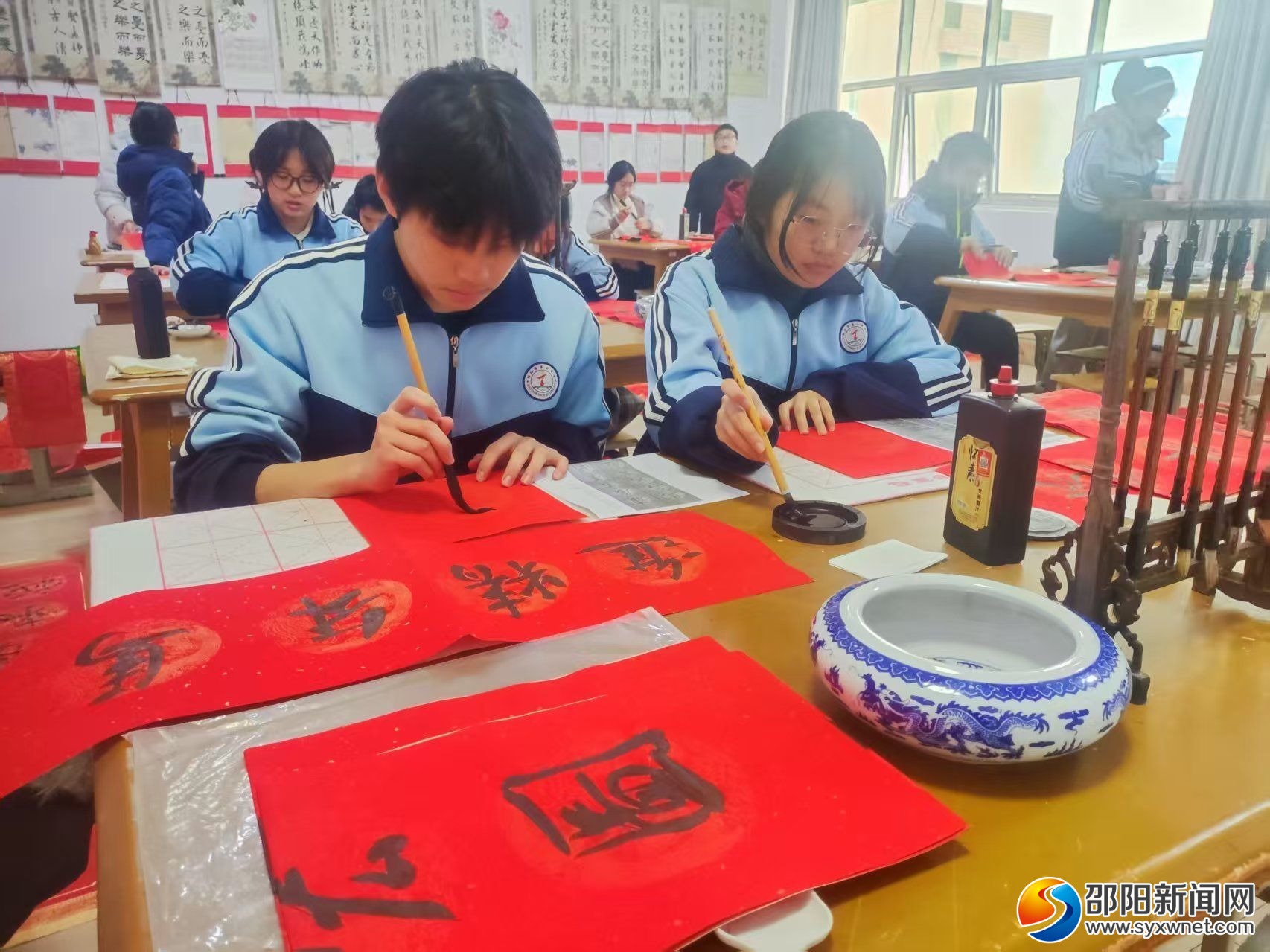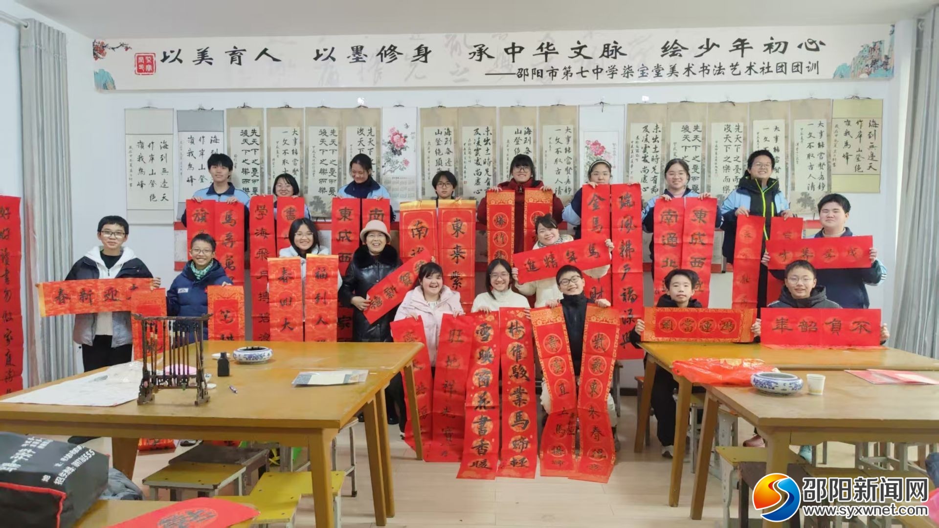 邵阳新闻网1月23日讯(通讯员 谢裕珍 张小峰)1月20日,邵阳市第七中学柒宝堂美术书法艺术社团内红幅铺展、墨香四溢,一场别开生面的“迎新春·写对联·承非遗”主题活动在此热烈开展,社团师生齐聚一堂,以笔为媒、以纸为介,用传统书法技艺书写新春祝福,让非遗文化在青春校园焕发新生。