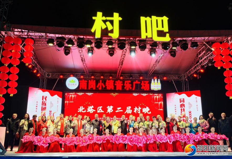 邵阳新闻网2月10日讯(通讯员 刘晓娴)2月8日晚,北塔区新滩镇街道南岗小镇灯火通明,暖意浓浓,第二届“村晚”文艺汇演在热烈祥和的气氛中拉开帷幕。由北塔区文旅广体局主办、邵阳村吧文旅发展有限公司承办的这场乡村文化盛会,不仅延续了首届活动的乡土特色,更以“民族团结一家亲 同心共筑中国梦”为主题,呈现了一场多民族文化交融、全民参与的春节联欢。