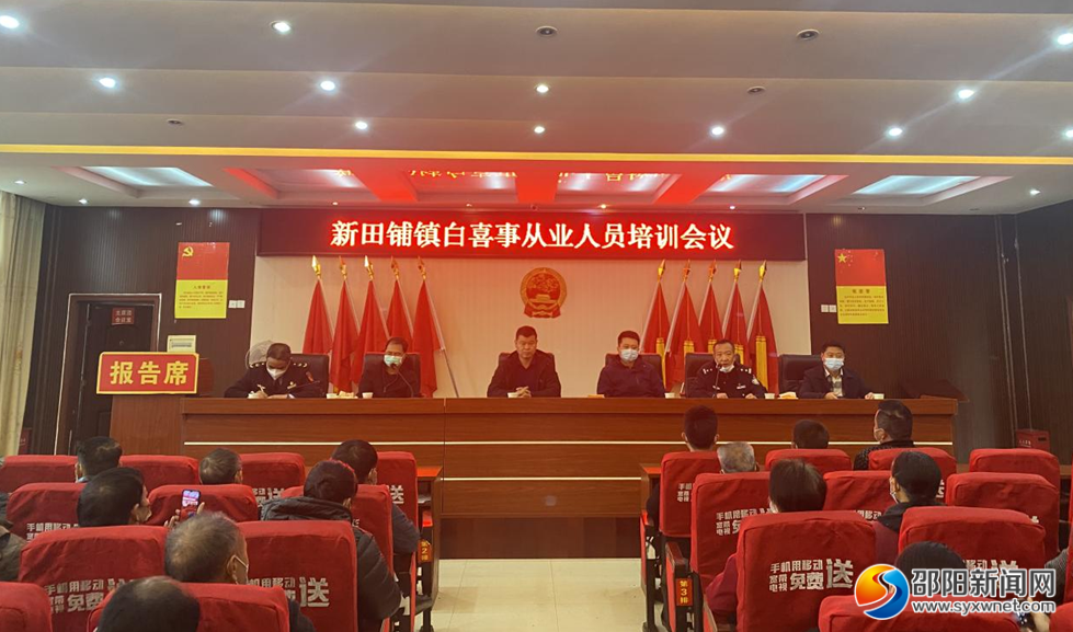 邵阳新闻网11月21日讯(通讯员 贺彩红)近日,新邵新田铺镇召开红白喜事从业人员培训会议,会议围绕宣传倡导厚养薄葬、红白喜事节俭、反对铺张浪费等相关内容,引导从业人员在参与活动时做新时代乡风文明的传播者、践行者。