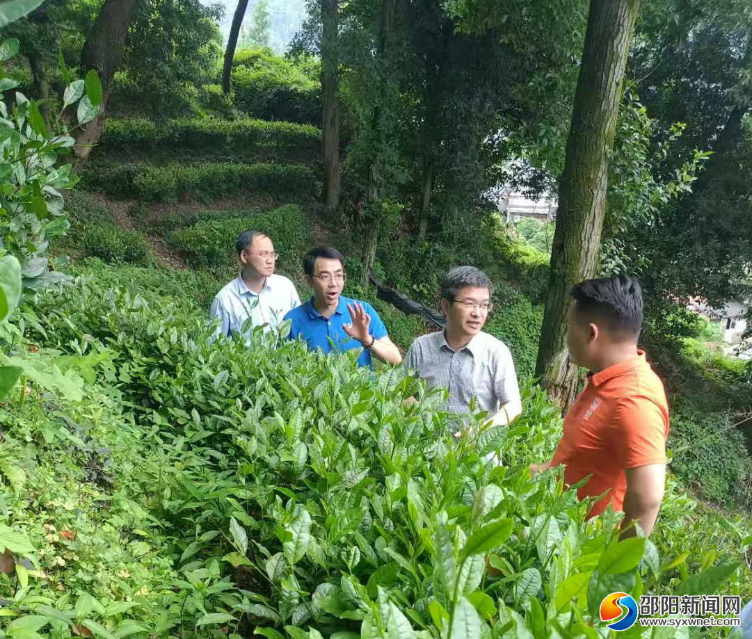 新宁县人大常委会调研组调研茶产业发展。
