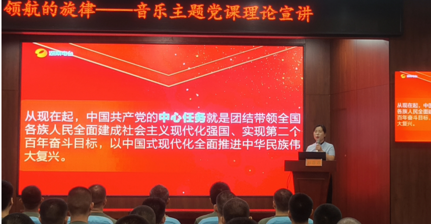 课堂上,中共新宁县委党校(行政学校)副校长、邵阳市“青年讲师团”成员郑菲菲,以“一个时代有一个时代的旋律,‘永远跟着共产党’是中国不变的领航旋律”为引,用饱含深情的讲述,串联起历史影像、音乐短剧、革命歌曲等丰富形式,将中国共产党百年奋斗征程娓娓道来。新兵们循着党的光辉足迹,在艺术化的宣讲中重温党的峥嵘岁月,接受精神洗礼,深刻感受信仰的力量。