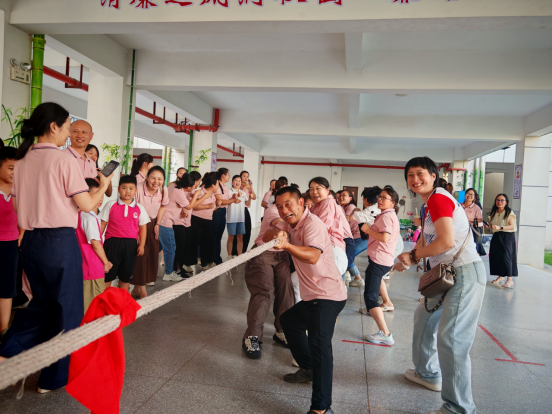 芙蓉学校的活力,漾在热闹的协作与欢笑间。学校将开学典礼与教师节庆祝“合二为一”,同学们用稚嫩声音送上祝福,工会组织的教师拔河比赛更将气氛推向高潮。赛场上,老师们齐心协力、奋力拉扯,场边呐喊助威声不断。这场比赛不仅为教师业余生活添了乐趣,更凝聚了团队力量,展现出团结奋进的精神风貌。