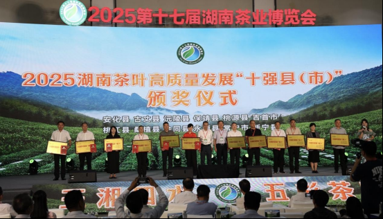 邵阳新闻网9月22日讯(通讯员 鄢跃斌 许玲 钱宇杭)9月19日,第十七届湖南茶业博览会在长沙启幕,本次茶博会以“三湘四水 五彩湘茶,乡村振兴 五彩茶香”为主题,汇聚全省14个市州、58个茶叶主产县的1200余家企业。展会期间,享誉“湖南野茶之乡”的新宁县不仅获评2025湖南茶叶高质量发展“十强县(市)”,辖区舜帝茶业有限公司拿下“十佳科技领军企业”称号,帝子灵芽青钱柳红茶、崀峰野茶斩获“茶祖神农杯”五星茶产品,更以“千年野茶·舜德新篇”为主题的沉浸式野茶馆惊艳全场,成展会亮眼焦点。