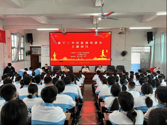 邵阳新闻网9月23日讯(通讯员 鄢跃斌 覃豪梅)“我志愿加入中国共产主义青年团……”9月22日,新宁县第三中学内,180余名各族团员青年高举右拳,重温入团誓词,铿锵誓言拉开“石榴籽心连心,中华少年一家亲”民族团结主题团日活动序幕。此次由新宁县委统战部和共青团新宁县委联合主办的活动,以多元形式奏响全县民族团结青春乐章。