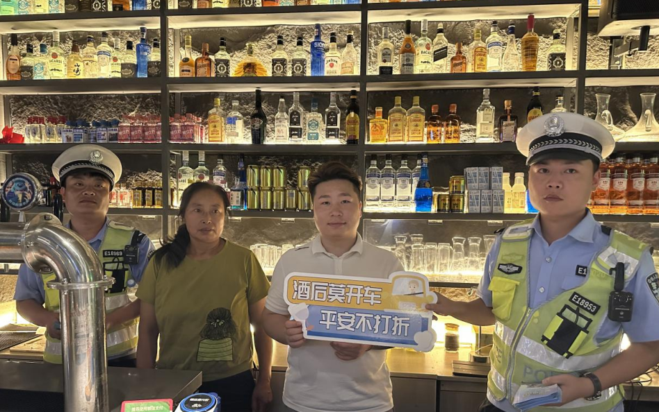 在一家小酒馆门口,民警向聚餐的食客们详细讲解酒醉驾的危害以及“一盔一带”的重要性:“哪怕只喝半杯啤酒,反应速度也会慢30%,千万别抱有‘离家近’的侥幸心理。正确佩戴头盔、系好安全带,能把死亡风险降低60%-70%。”同时,民警还敦促酒馆服务人员和老板履行监督、提醒义务,从源头上减少涉酒驾驶行为。酒馆老板积极配合,主动将“酒后禁驾”提示牌贴在吧台:“放心,喝酒的客人我绝对不让他开车走!”