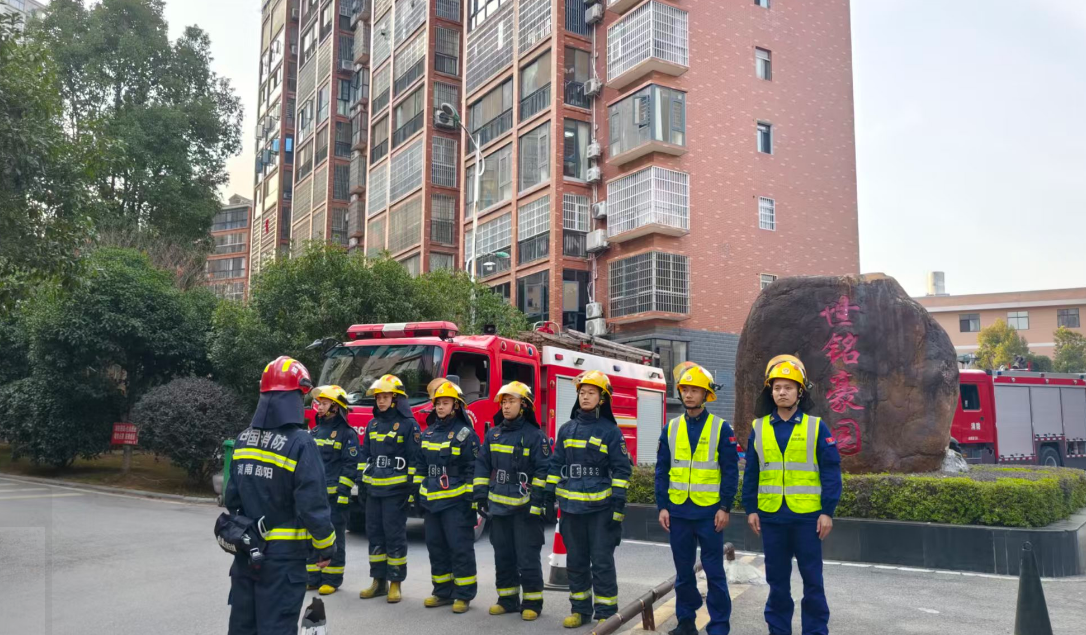 实战演练强技能,提升战力“保平安”。围绕高层建筑“结构复杂、疏散困难、火势蔓延快”的火灾特点,坚持“贴近实战、以练促战”原则,多次组织开展高层建筑“六熟悉”实战演练。通过实地勘察建筑内部结构、重点部位、消防水源、固定消防设施等情况,针对性设置火灾场景,重点演练火情侦察、内攻搜救、疏散引导、供水保障等关键环节,进一步提升消防救援人员协同作战、快速应变和实战处置能力。累计开展实战演练4次,修订完善灭火救援预案6份,为高效处置高层建筑火灾奠定坚实基础。