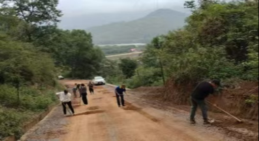 人大代表陈祥书、李春芳等同志和群众一起开展组道维修