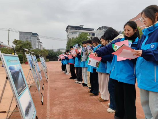 活动现场,宣传展板整齐排列,夫夷江湿地公园内越冬候鸟的灵动身姿、崀山湿地涵养水源的生态图景图文并茂,吸引同学们驻足细看、轻声讨论。工作人员通过播放科普短视频、发放宣传手册、悬挂主题横幅等形式,从湿地的定义、“地球之肾”的核心功能,到本地湿地特有的动植物资源、湿地保护的具体措施,层层递进地展开讲解,将专业知识转化为通俗易懂的语言,让同学们全方位感知湿地与人类生存发展的密切关联。