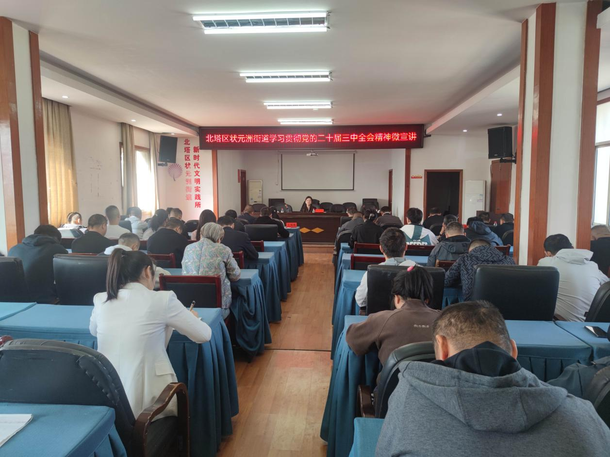 邵阳新闻网10月25日讯(记者 龙皓 邓文杰)10月24日,邵阳市委理论宣讲小分队在北塔区状元洲街道、苗儿村、柘木社区、磨石社区的新时代文明实践所(站),以座谈会、院落会等多种形式开展了一场场深入人心的党的二十届三中全会精神微宣讲,街道社区干部、群众代表齐坐一堂,聚精会神地聆听宣讲团老师宣讲党的二十届三中全会精神。