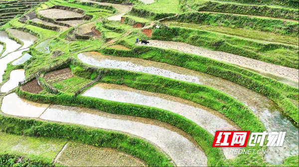 农民朋友抢抓时令,灌水翻耕、育秧备种,光与线条组合诗意田园,人与汗水汇聚耕作之歌。