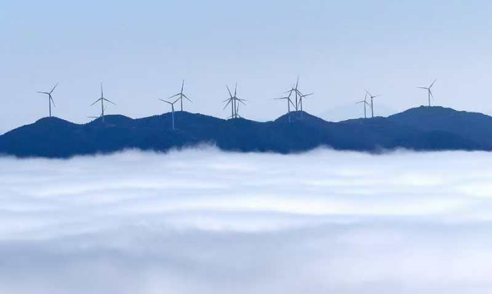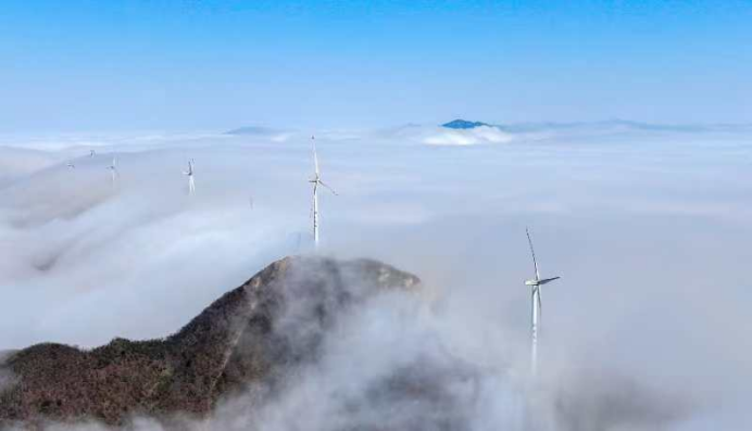 邵阳新闻网11月21日讯(通讯员 鄢跃斌 冷洁 朱巨滨)11月20日,一场初冬细雨过后,地处海拔1500余米的新宁县黄金瑶族乡风雨殿风力发电场,迎来了一个微风轻拂、天空湛蓝的宁静时刻。巨大的风力发电机组在朦胧的云海之中时隐时现,与苍茫大地相依相伴,宛如一幅浓墨重彩的长卷国画。