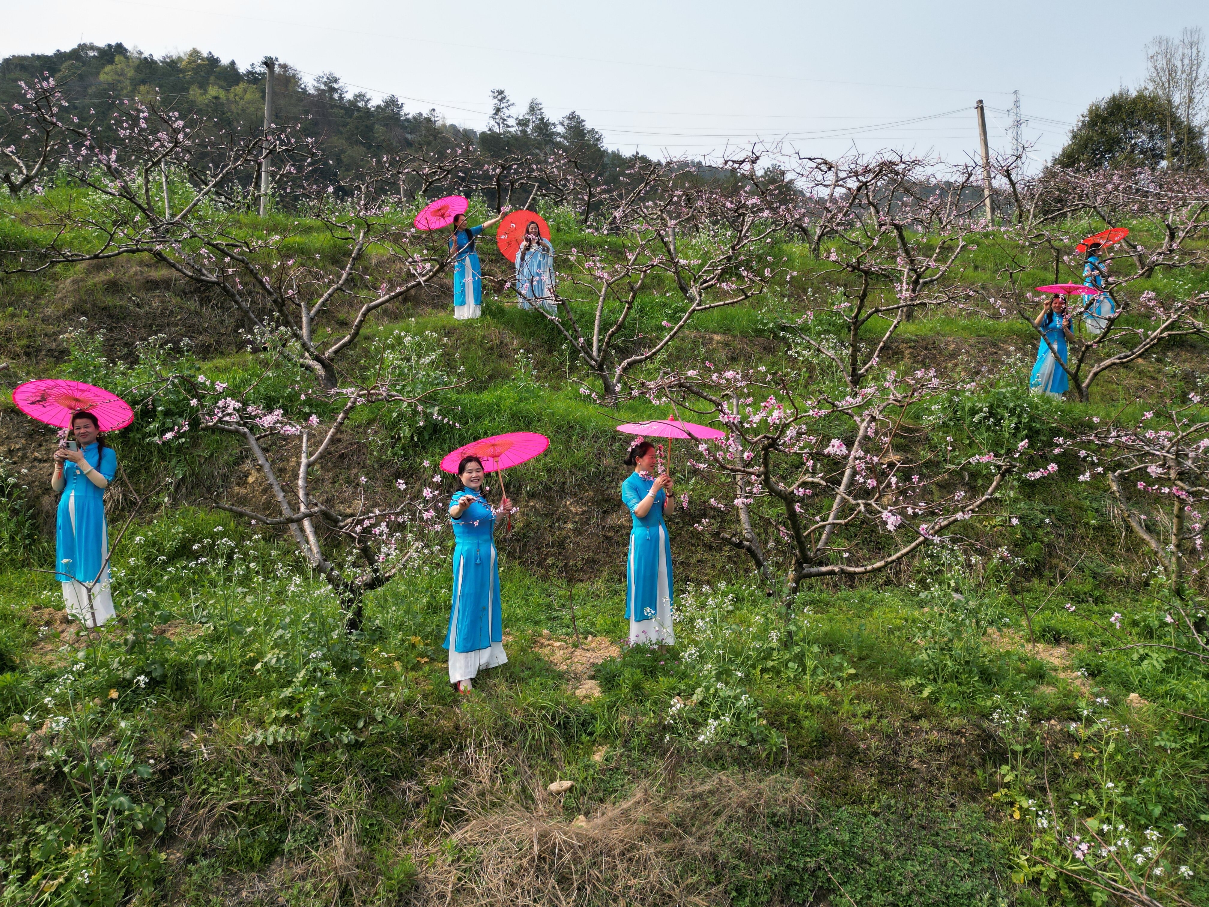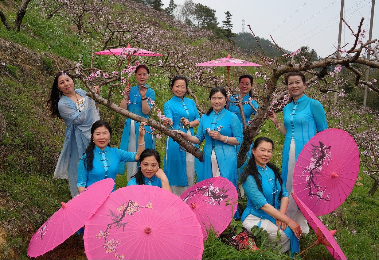邵阳新闻网3月24日讯(通讯员 宋三龙 唐芳艳 张先邵)3月23日,邵阳市绥宁县长铺子苗族侗族乡寨坡村满坡桃花竞相绽放,灿若云霞,美不胜收,一树树桃花形态优美,枝干扶疏、花朵丰腴、色彩艳丽。桃花一朵接着一朵,一树连着一树,那淡淡的粉,浅浅的红,缀满枝头,一簇簇,一串串,密密匝匝,在明媚的春光下,格外灿烂。绥宁县旗袍文化交流协会的姐妹们,趁着周末晴好天气,相约一起到这里看桃花,她们身着古风长裙,衣袂飘飘,穿梭在花海中,似仙女下凡,时而携手赏花、时而欢歌笑语、时而拍照留念,享受春天美好风光。
