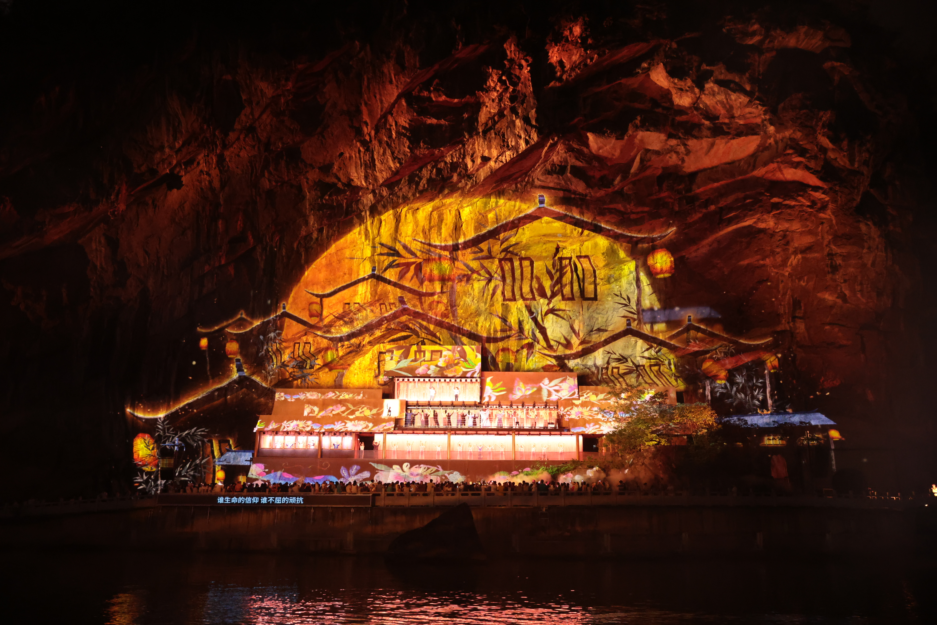 巫江夜游以城步巫水河畔的自然风光为基底,深度融合苗族文化精髓,将“行船游赏”“数字光影”“沉浸式情感交互剧场”深度融合,通过光影秀、全息投影、AR/VR互动等科技手段,为游客呈现出一场“看得见诗意,留得住光影”的文化盛宴。