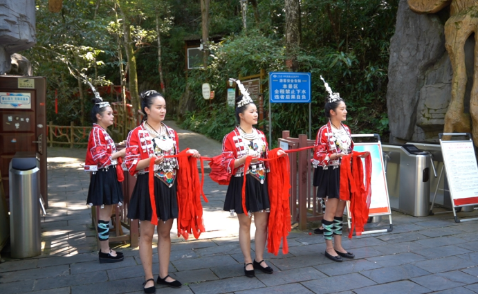 曲幽谷入口的“苗家姑娘拦门”仪式 鄢子棋摄