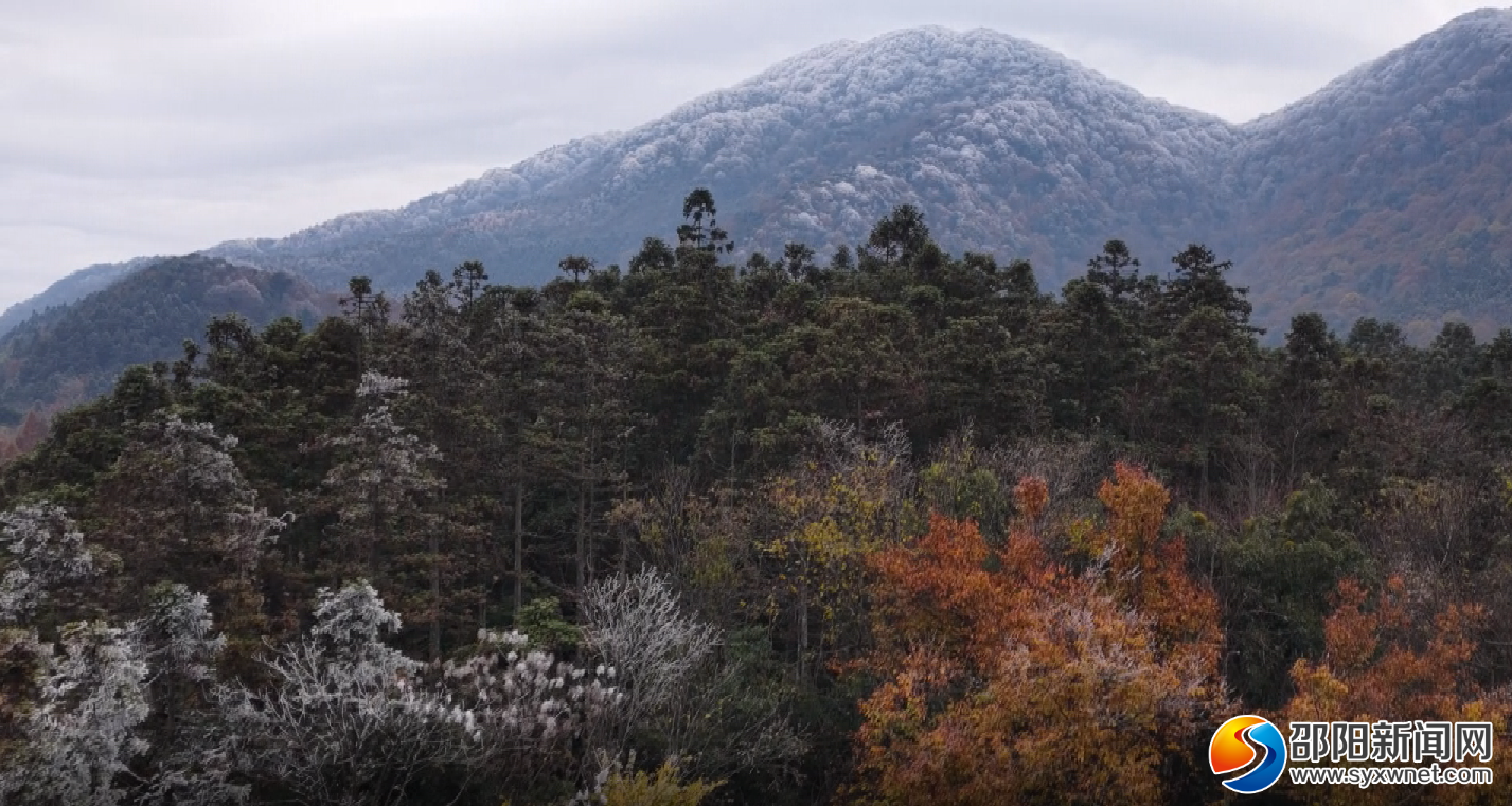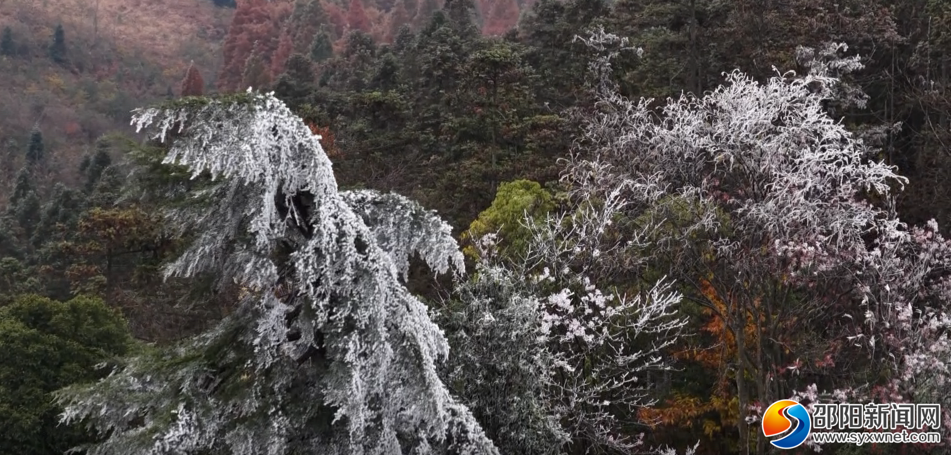邵阳新闻网11月20日讯(通讯员 林愉杰 朱巨滨 许毅)随着初冬的清冷悄然漫上山脊,日前,新宁县舜皇山国家级自然保护区紫云山片区迎来今冬第一场雾凇美景,只见群山之间雾凇与山间五彩斑斓的植被交相辉映,美不胜收。